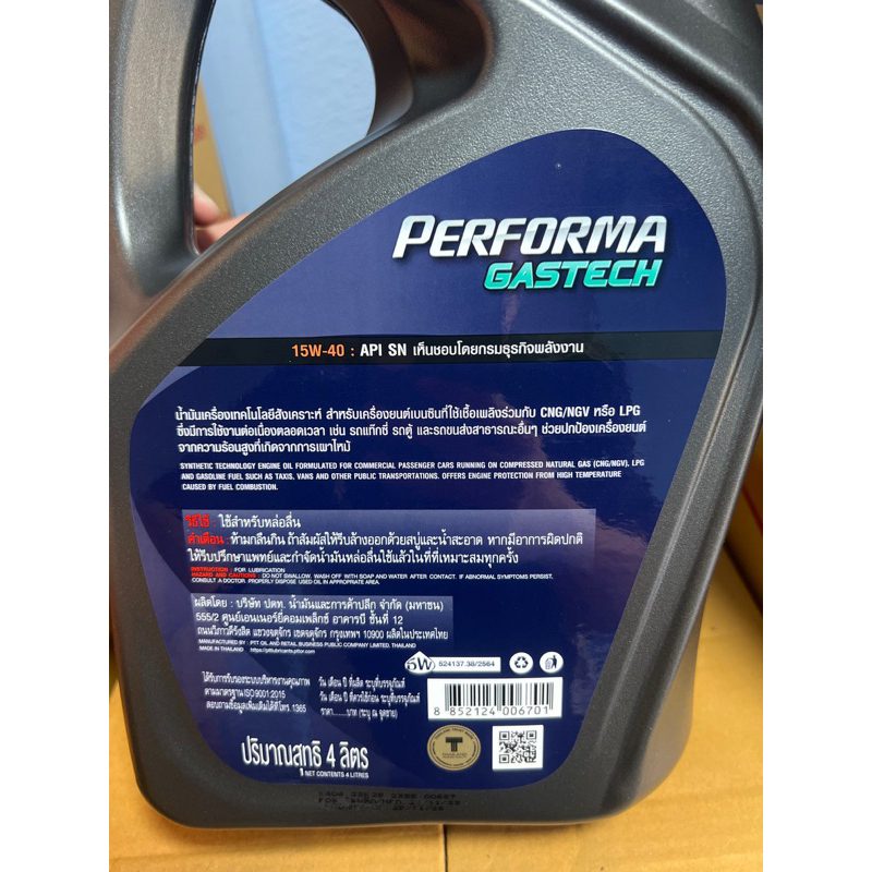 PTT Performa gastech SAE 15w-40 สำหรับเครื่องยนต์เบนซินใช้แก๊สหรือสองระบบ