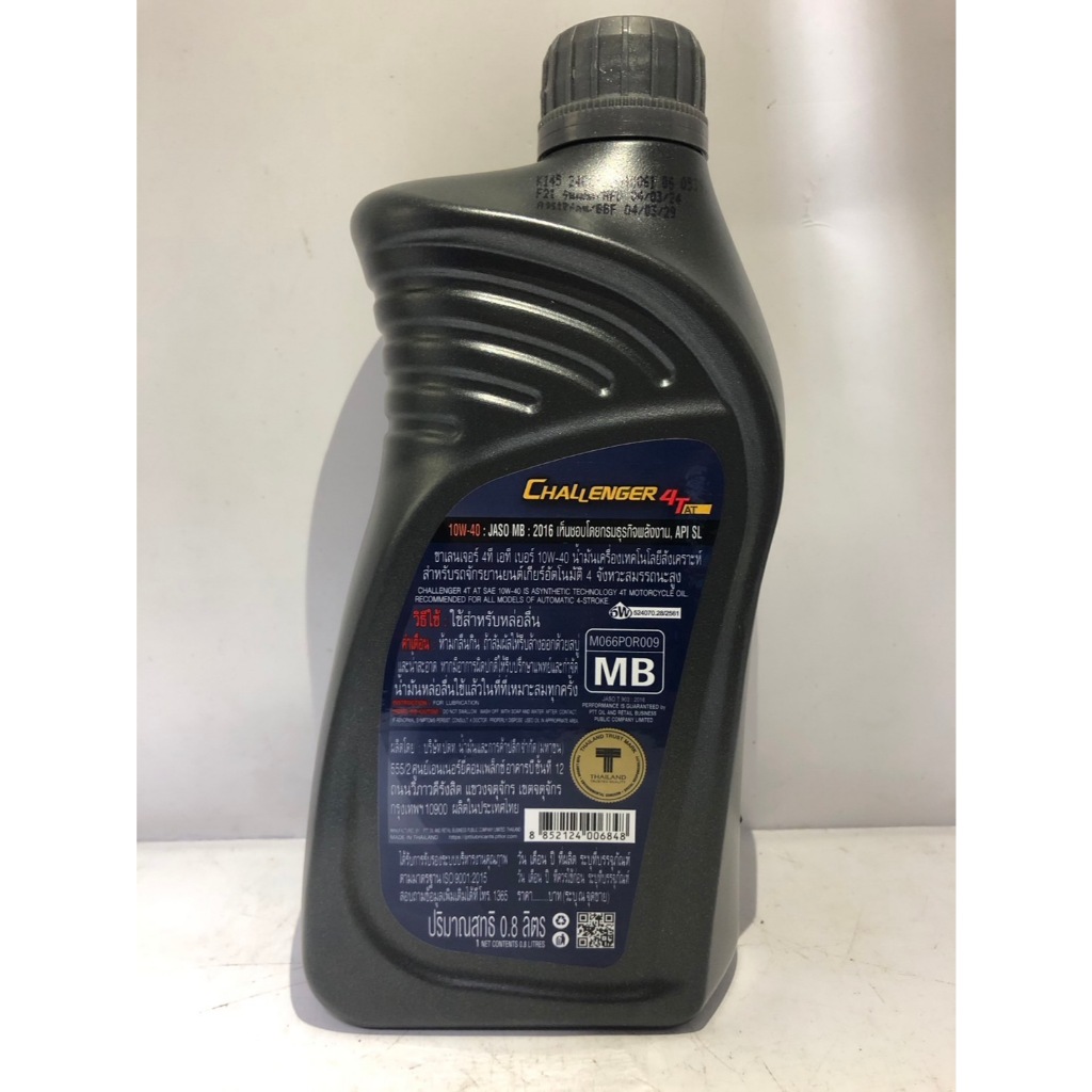 (ขายส่งยกลัง) น้ำมันเครื่องมอเตอร์ไซค์ PTT Challenger 4T 10W-40 (10/1.0L) JASO MA2 ฝาดำ