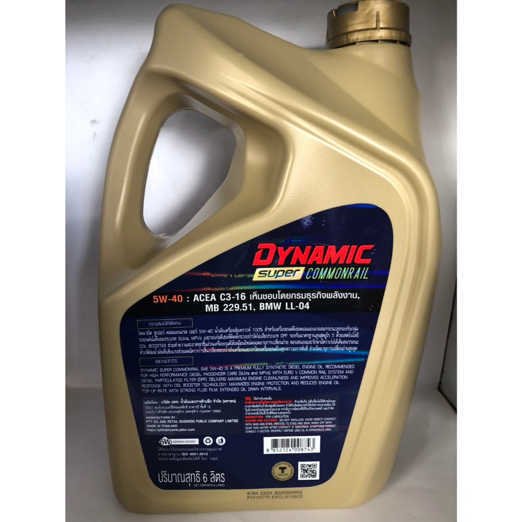 น้ำมันเครื่องดีเซลสังเคราะห์ ไดนามิค ซุปเปอร์ คอมมอนเรล 5W-40 Dynamic Super Commonrail 5W-40 6L,6+1L