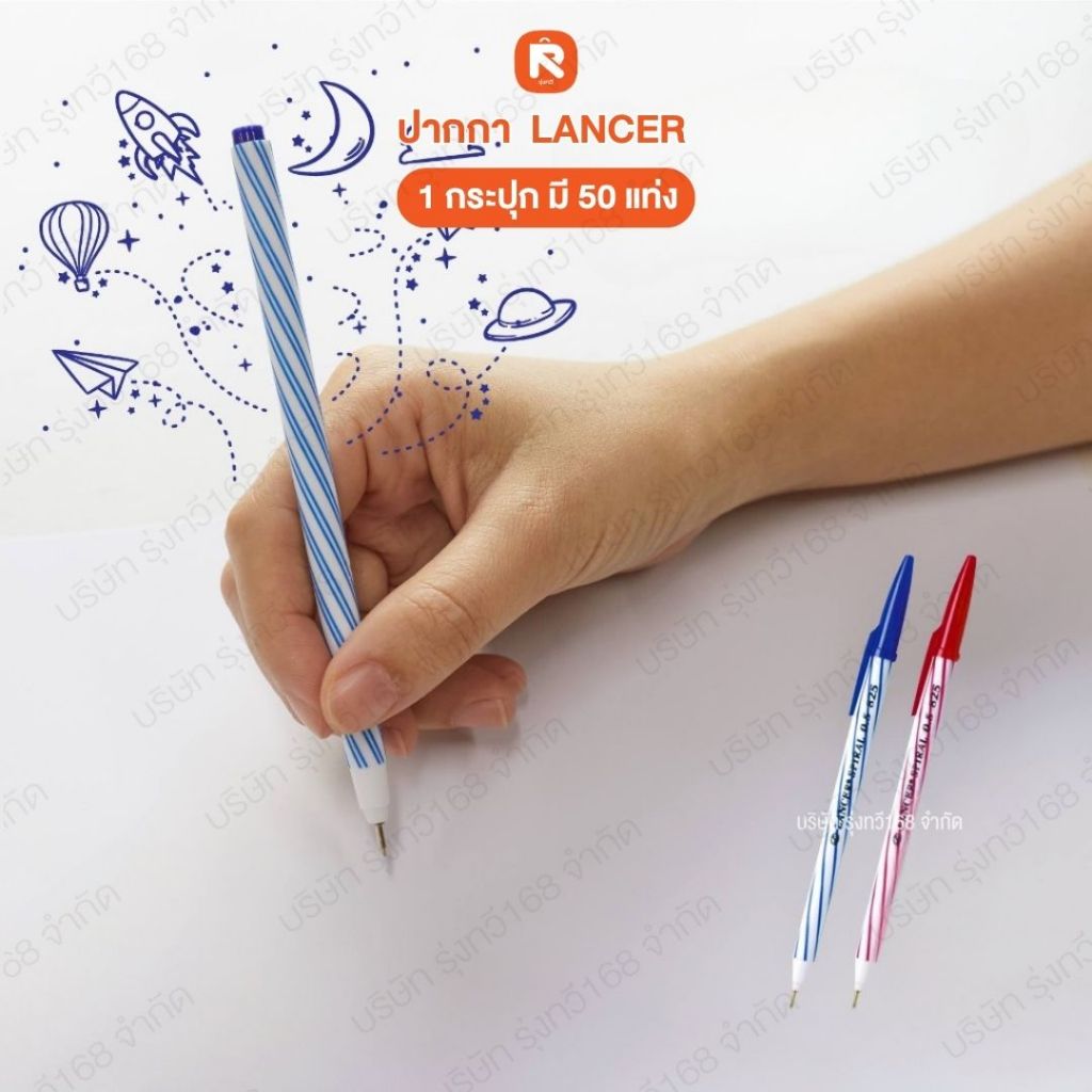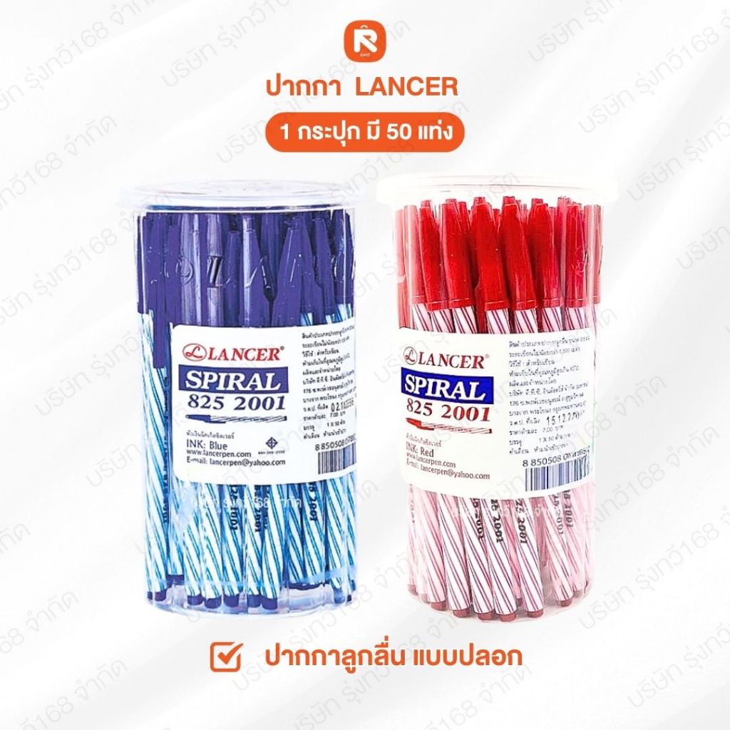 ปากกา 825 2001 Lancer น้ำเงิน-แดง (กระปุก 50 ด้าม)💙❤️ Lancer Spiral ปากกาลูกลื่น แลนเซอร์