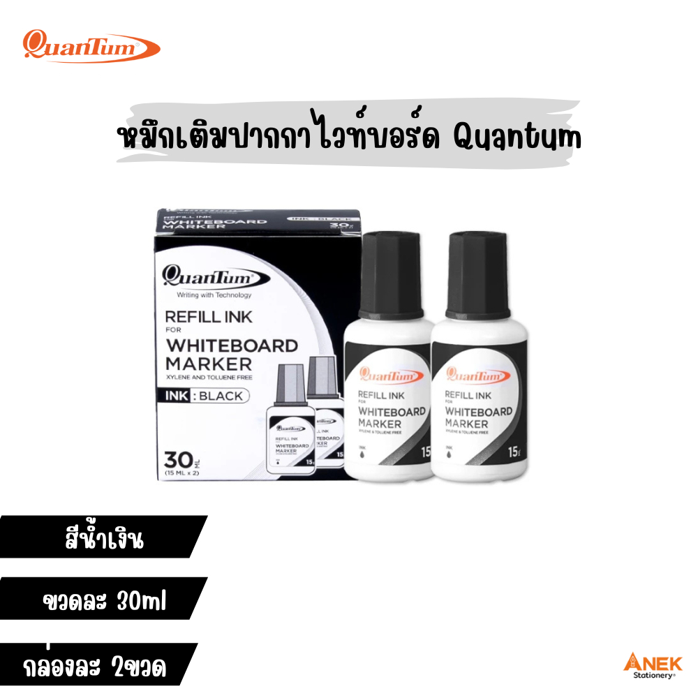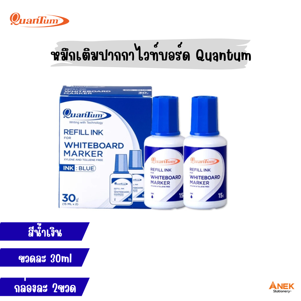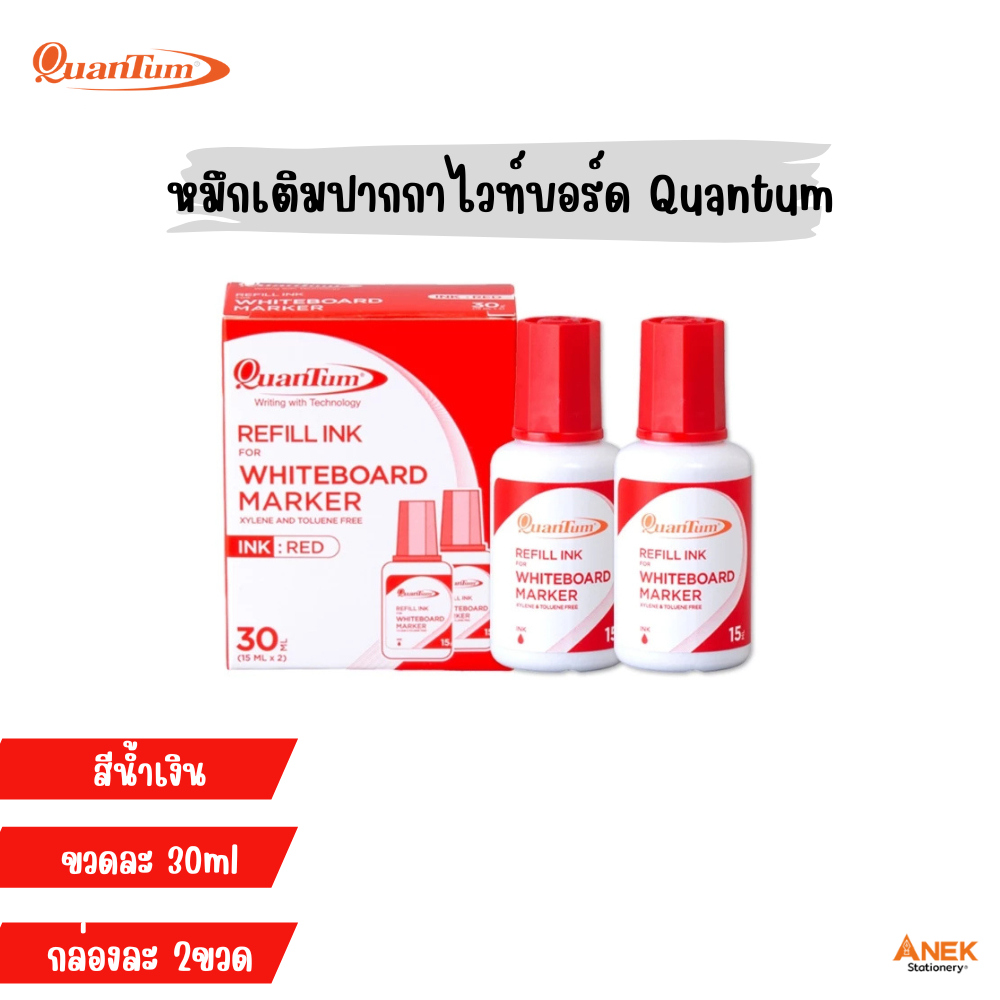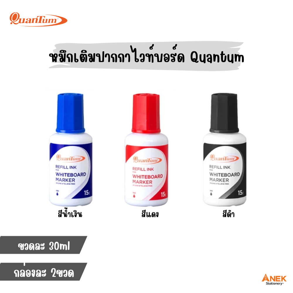 หมึกเติมปากกาไวท์บอร์ด Quantum ขนาด 30 ml สีน้ำเงิน แดง ดำ (15 ml x2 ขวด/กล่อง)