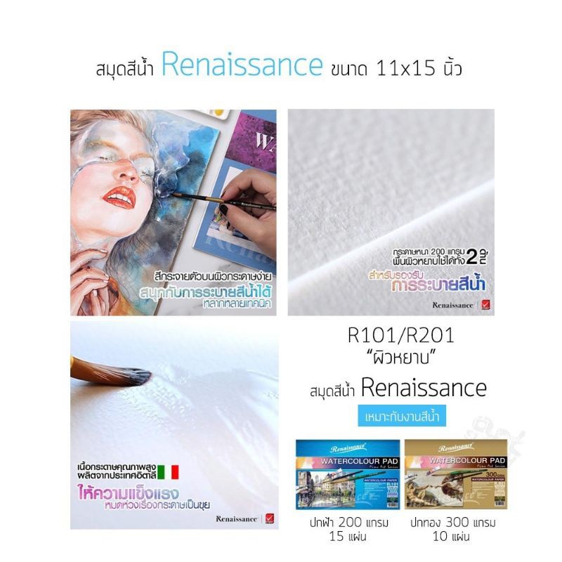 Renaissance สมุดวาดเขียน ชนิดหยาบ หนา 300 แกรม ขนาด 15X11 นิ้ว รุ่น R602 บรรจุ 10 แผ่น/เล่ม