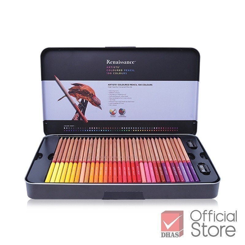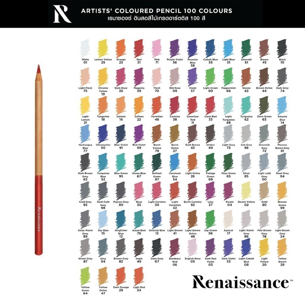 Renaissance สีไม้ ดินสอสีไม้ เกรดอาร์ตติส รุ่น 100 สี กล่องเหล็ก จำนวน 1 กล่อง
