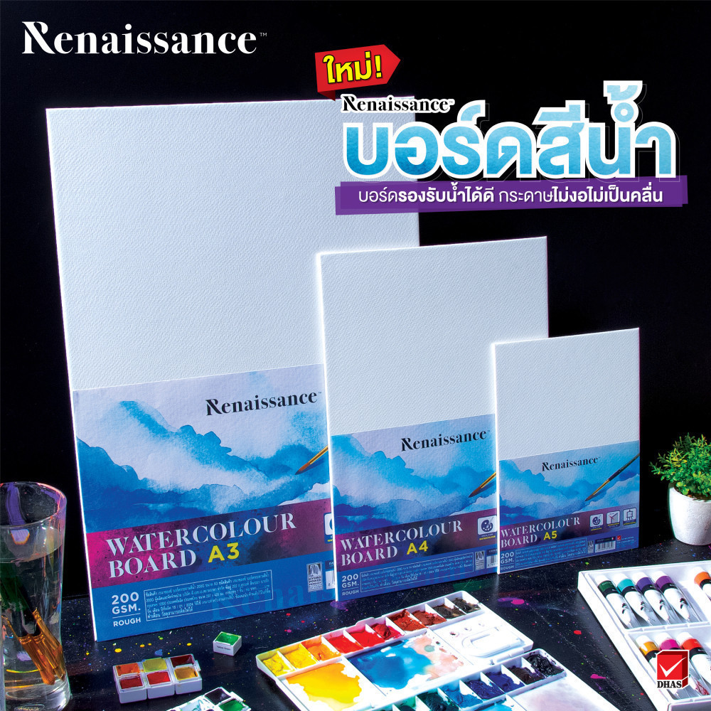 Renaissance บอร์ดกระดาษสีน้ำ กระดาษร้อยปอนด์ 200G ผิวหยาบ ขนาด A3 / A4 / A5 จำนวน 1 แผ่น