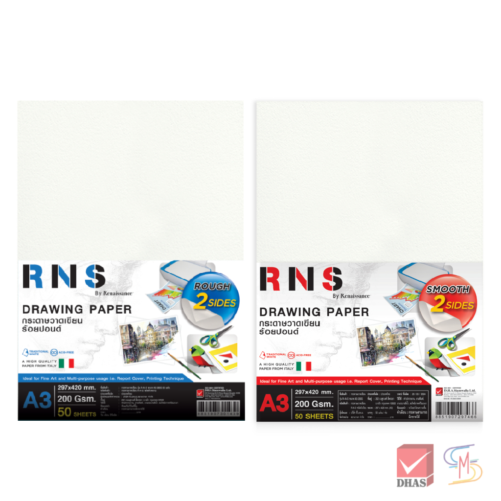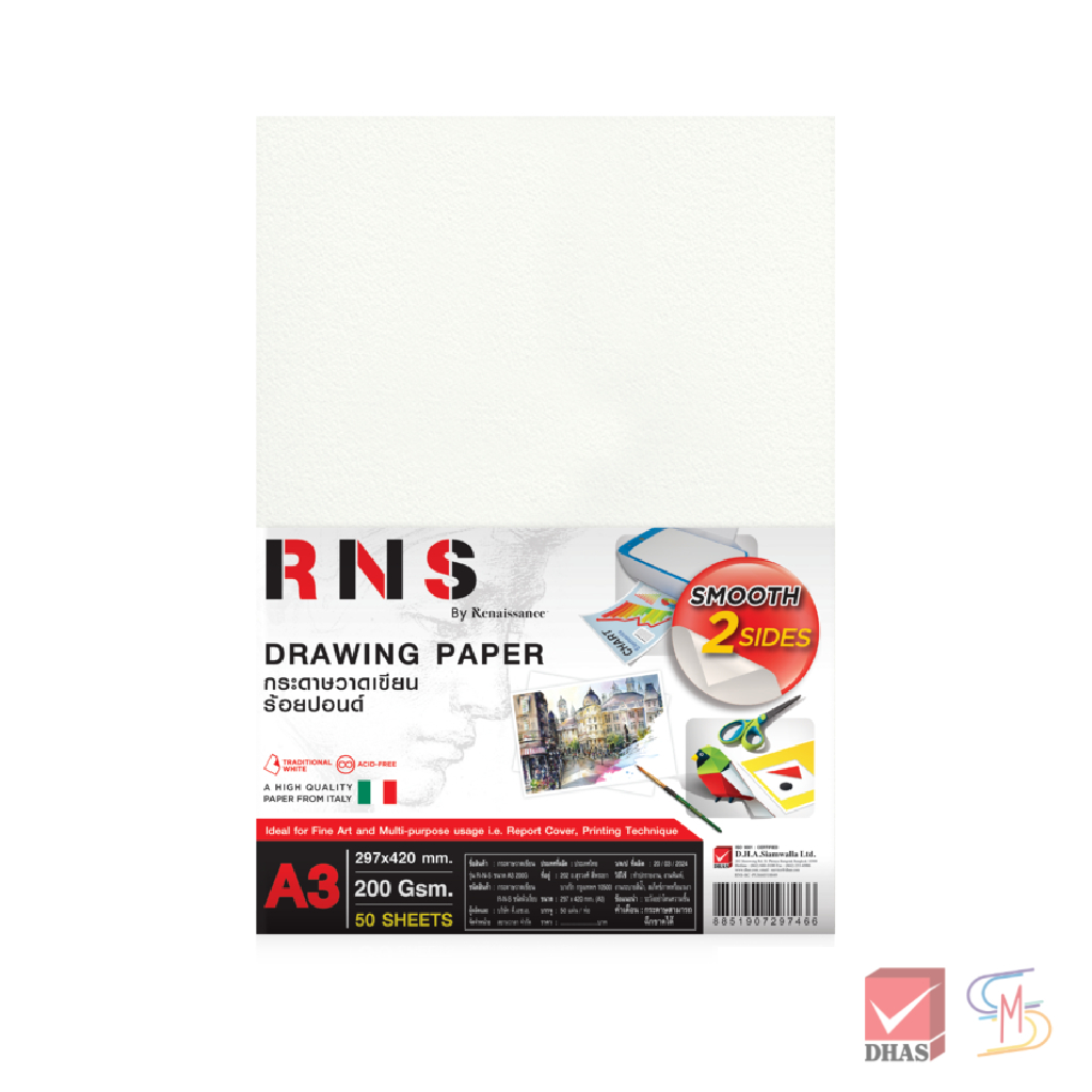 Renaissance กระดาษวาดเขียน อเนกประสงค์ RNS แผ่นเรียบ / แผ่นหยาบ A3 200G จำนวน 50 แผ่น/แพ็ค