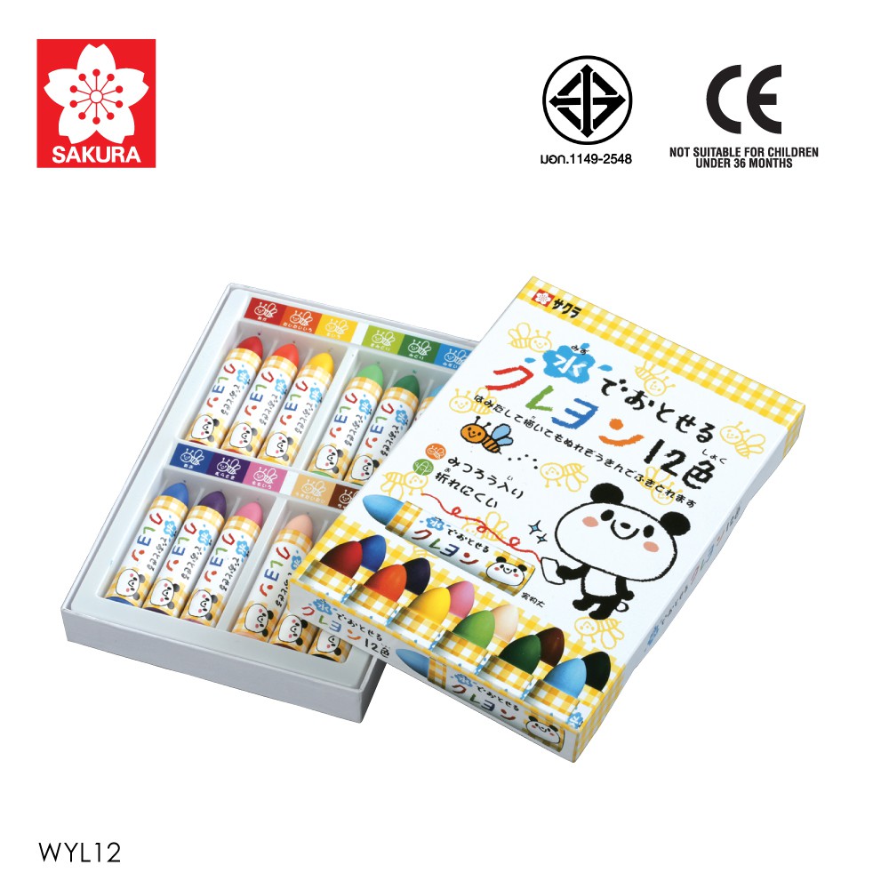 SAKURA (ซากุระ) สีเทียนล้างออกได้ สีเทียนสำหรับเด็ก รหัส WYL12,16