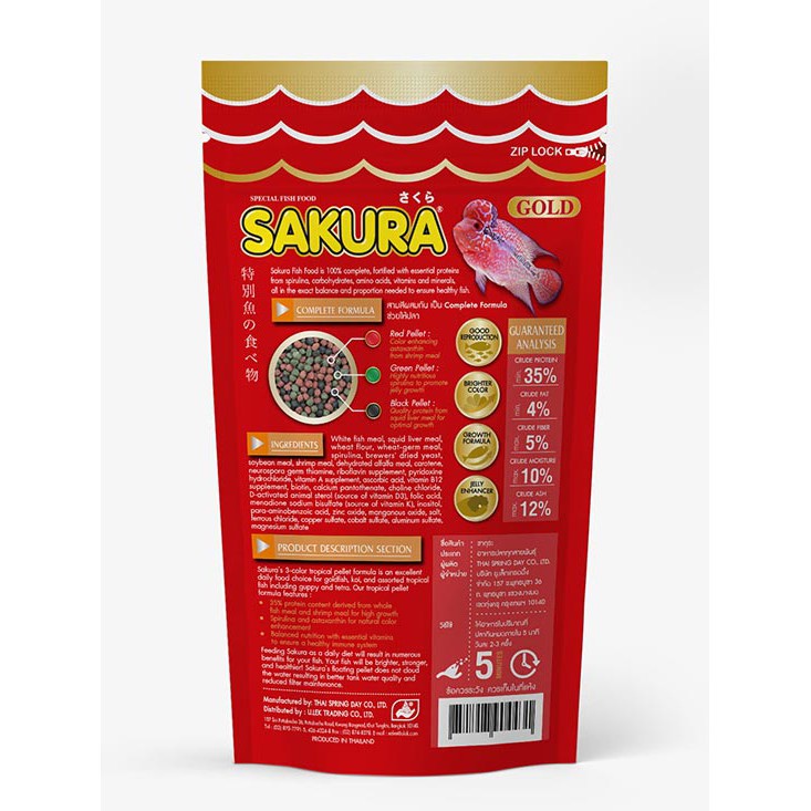 SAKURA Gold 250กรัม (อาหารปลาซากุระ โกลด์ ขนาดเม็ด B S M )