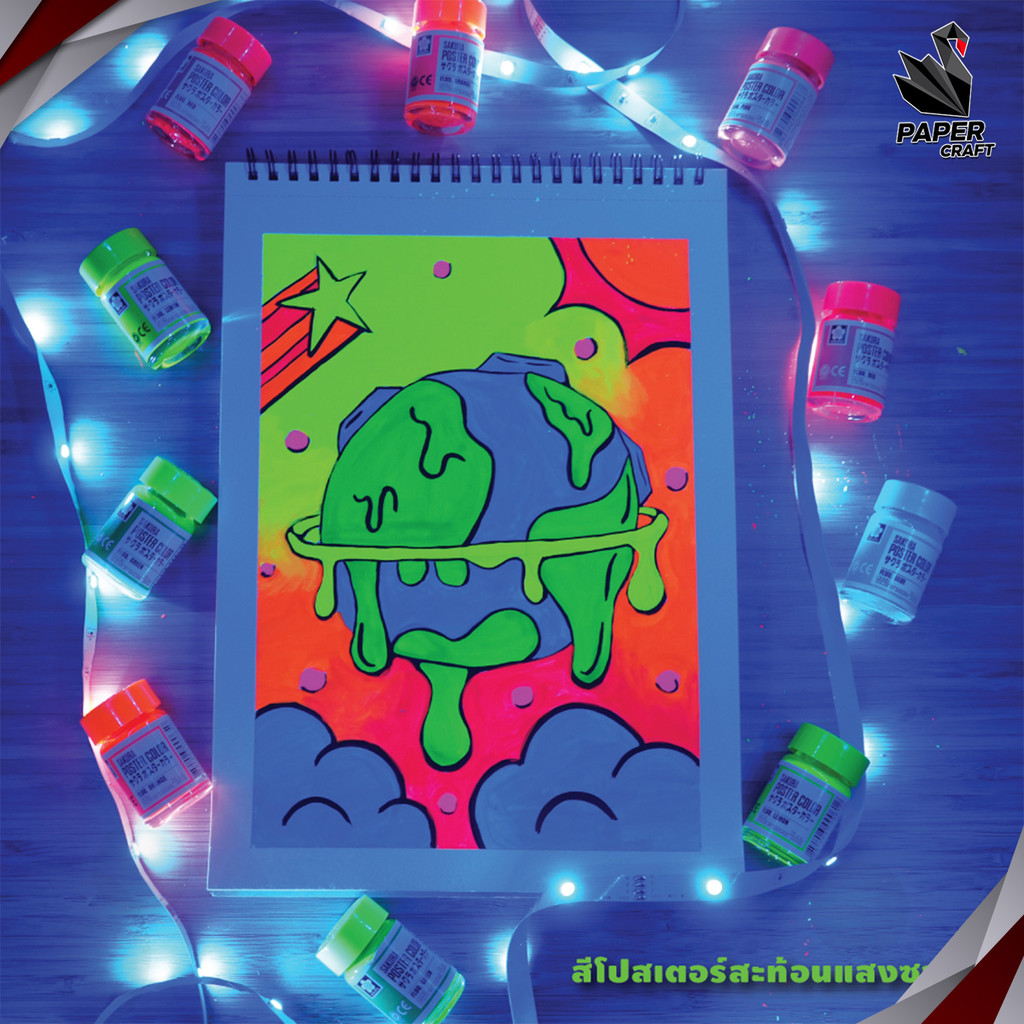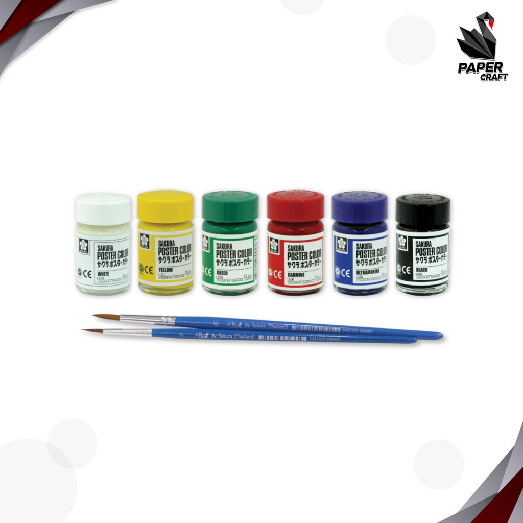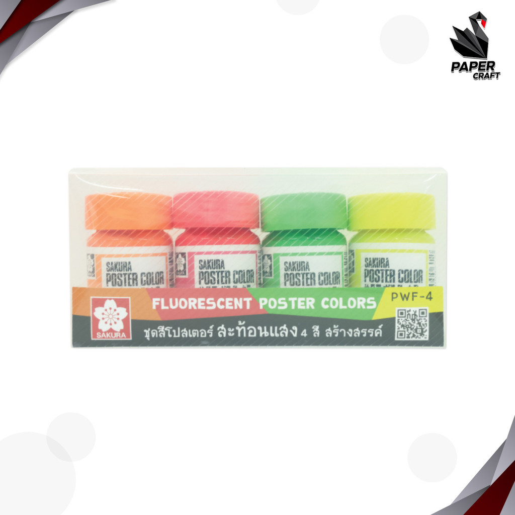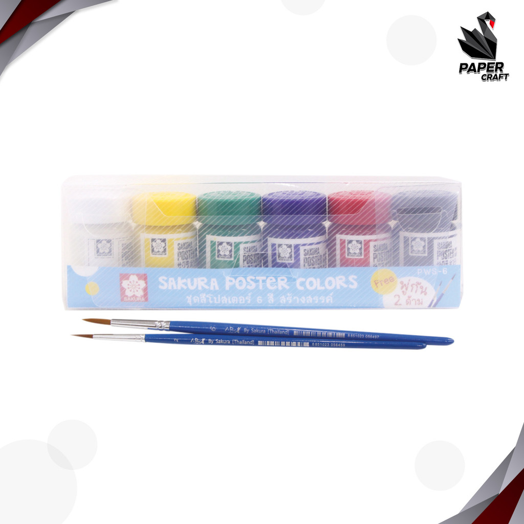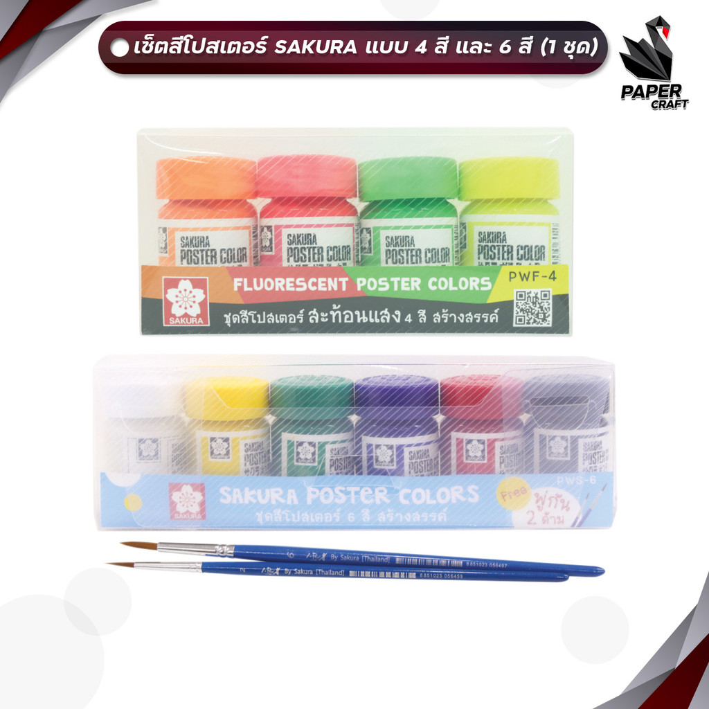SAKURA (ซากุระ) สีโปสเตอร์ รุ่น 4 สีสะท้อนแสง, 6 สี แถมพู่กัน 2 ด้าม ( 1 กล่อง )