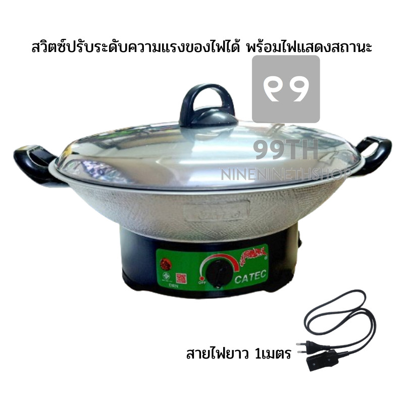 CATEC กระทะไฟฟ้าอเนกประสงค์ 🎀 หม้อไฟฟ้าเคลือบสารกันติด 12นิ้ว1000วัตต์ 🧩 ปรับระดับความร้อนได้ nn99