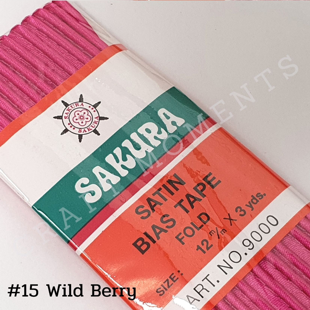 CRAFT MOMENTS: ผ้ากุ้นเชือก ผ้าซาติน SAKURA SATIN PIPING BIAS TAPE 1/2″ ยาว3หลา ผ้ากุ้นสำเร็จมีไส้