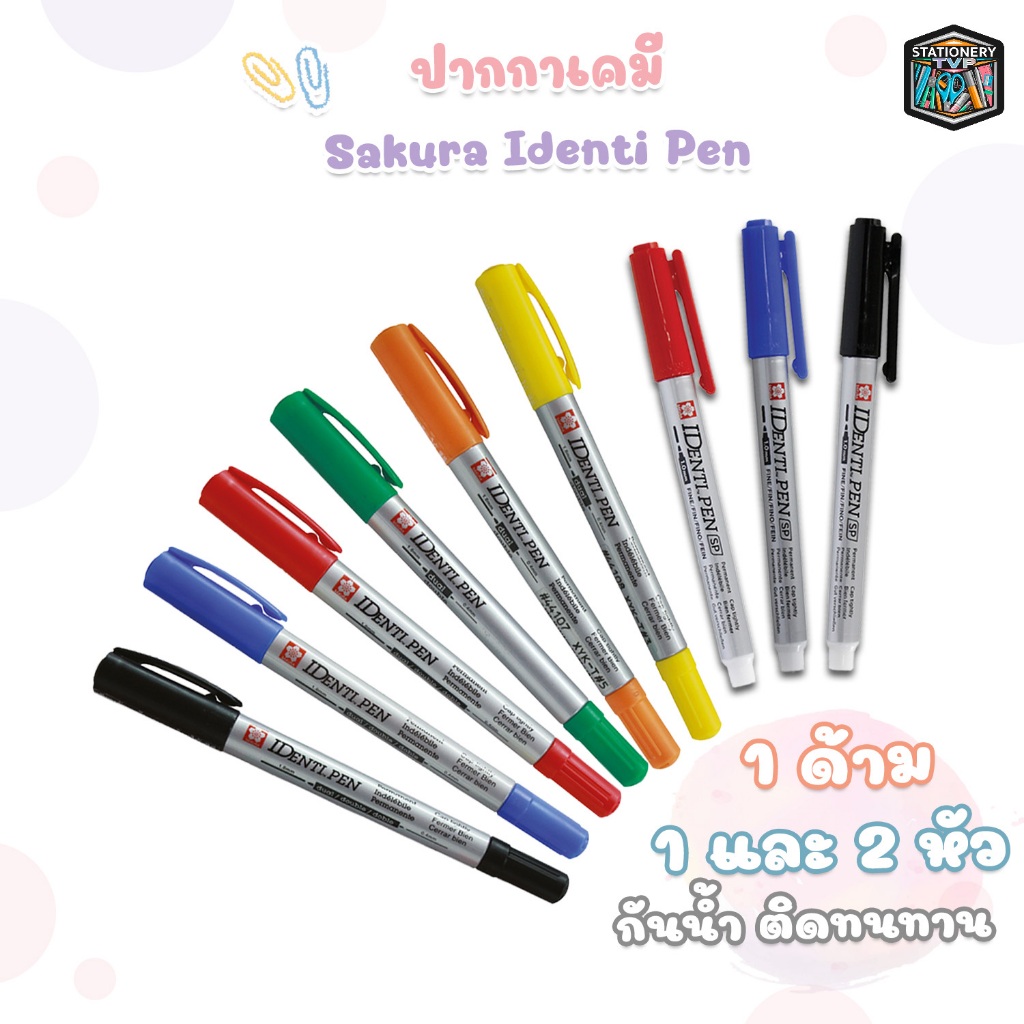 Sakura ปากกาเคมี รุ่น IDENTI PEN กันน้ำ ลบไม่ได้ ปากกาเขียนแก้ว เขียนซีดี เขียนผ้า รุ่น 2 หัว และ 1 หัว (จำหน่าย 1 ด้าม)