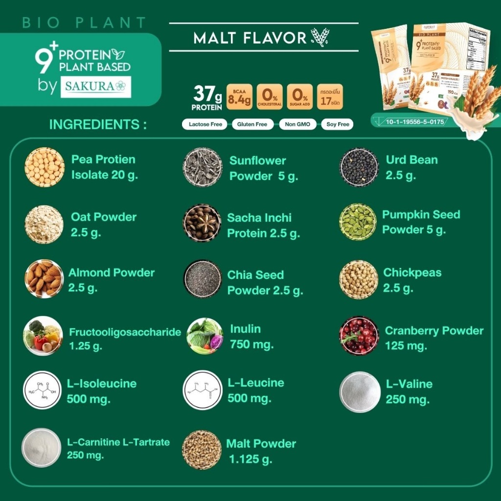 ⚡️ส่งฟรี⚡️ 🌱Bio Plant 9+ โปรตีนพืช ออร์แกนิค 9 ชนิด 1 กล่องมี 7 ซอง ส่งฟรี ส่งทุกวัน