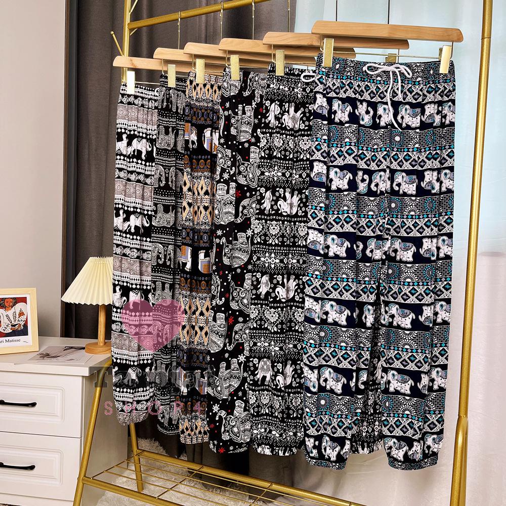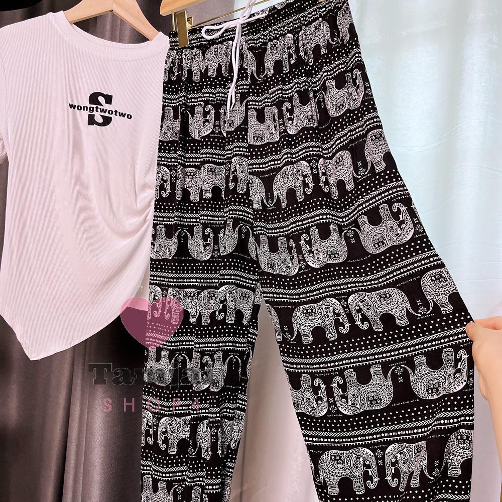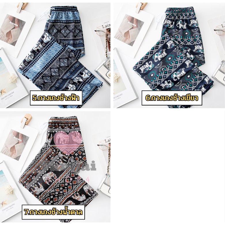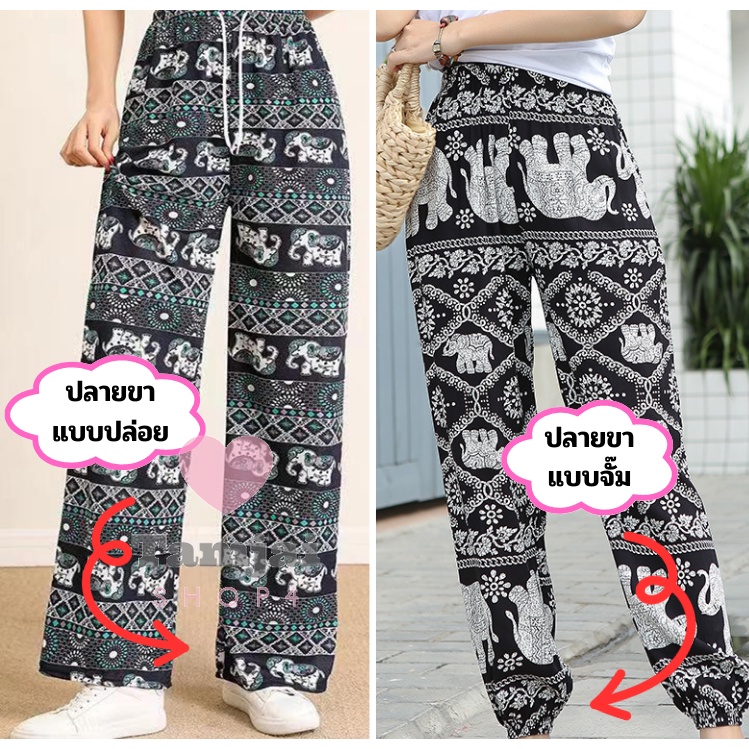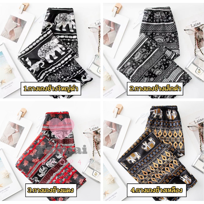 กางเกงขายาวลายช้าง 🐘 เนื้อผ้านุ่มลื่นใส่สบาย มีเชือก มีให้เลือกถึง7สี 💈 tj99