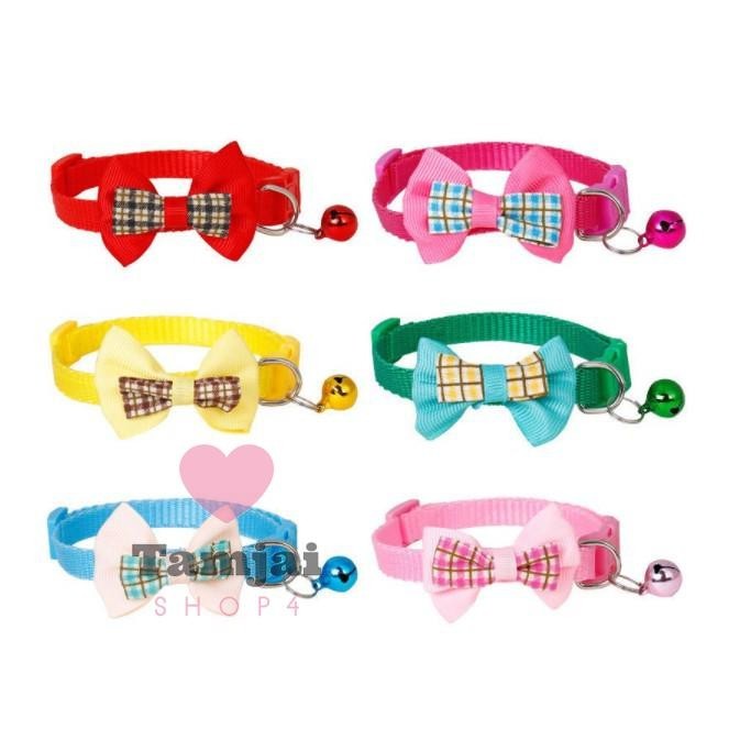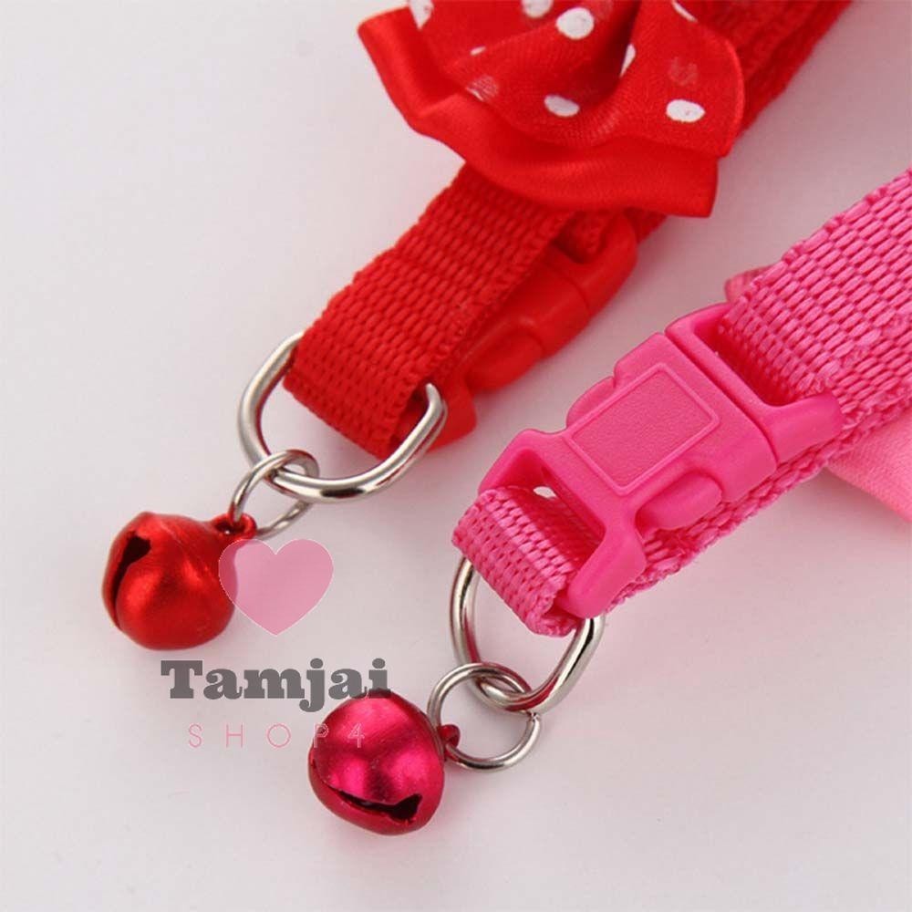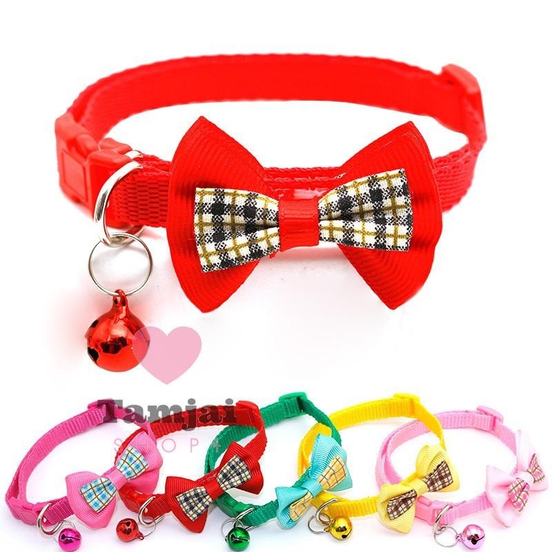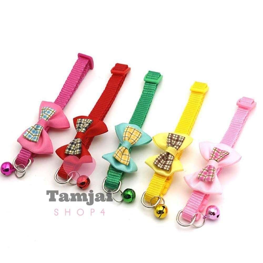 ปลอกคอสัตว์เลี้ยง ปลอกคอแมว ผูกโบว์ พร้อมกระดิ่ง สุดน่ารัก มี 7 สี ปรับขนาดได้ ส่งจากไทย tj99