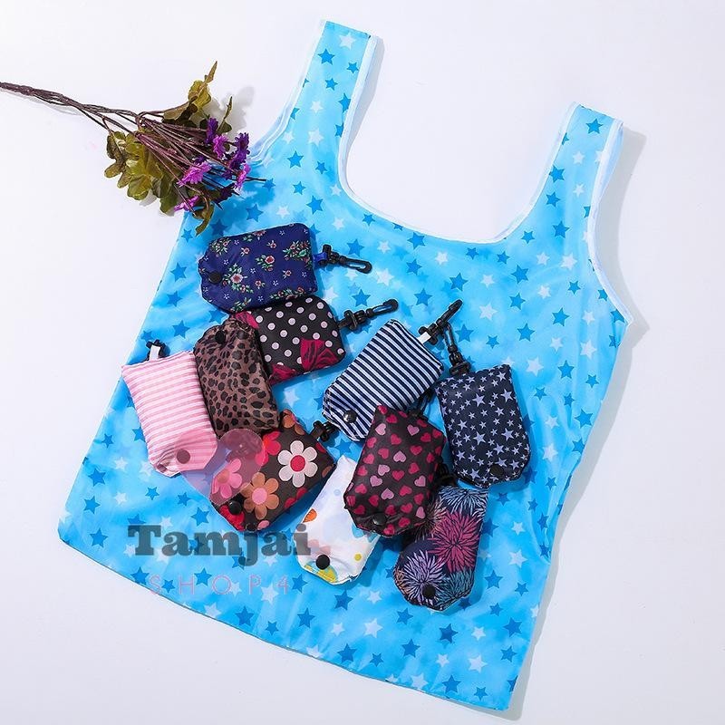 กระเป๋าพับได้ กระเป๋าช๊อปปิ้ง ถุงผ้า พกพาสะดวก ถุงผ้าคุณภาพดี รับน้ำหนักได้เยอะ tj99