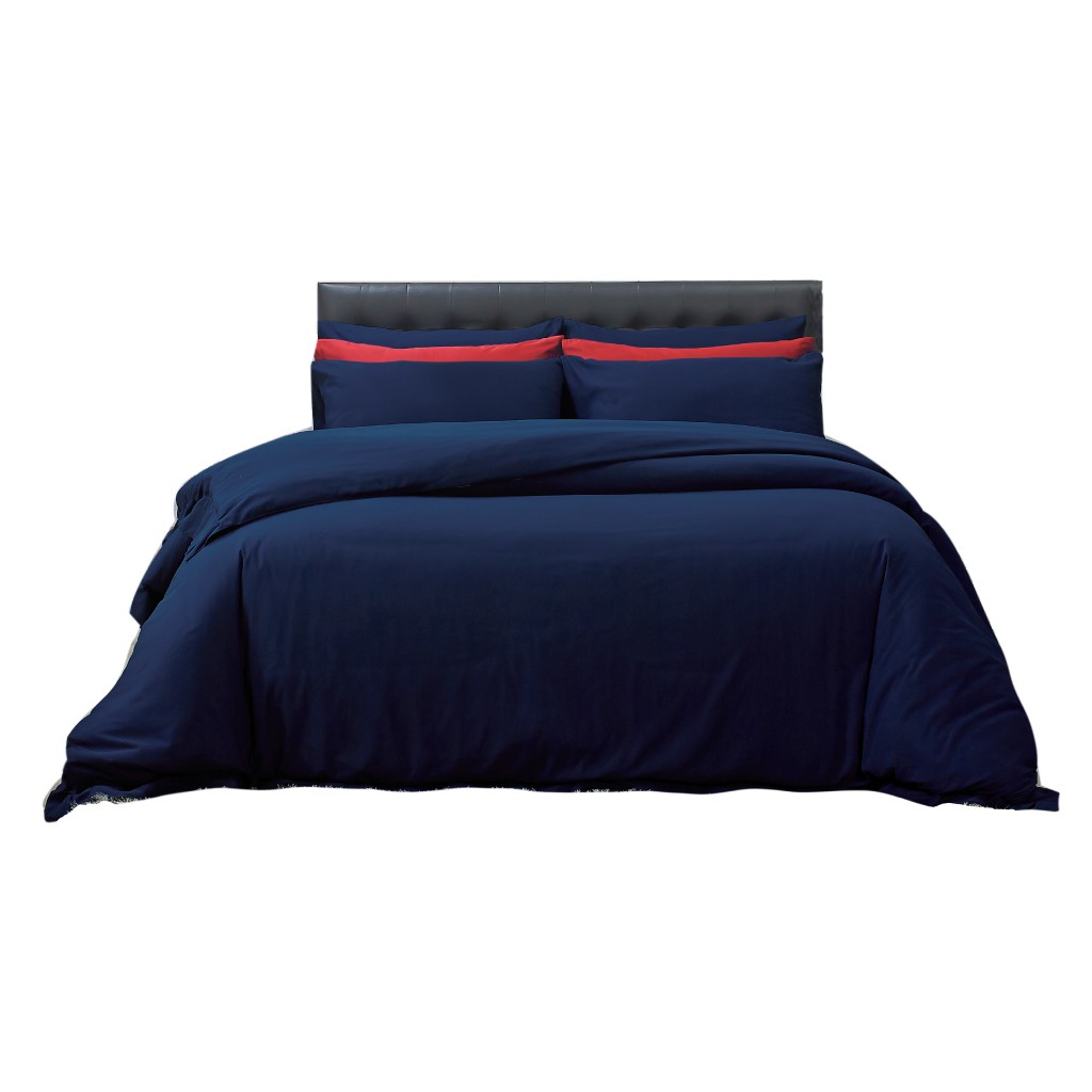 Satin Plus ใหม่นุ่มมาก ชุดผ้าปูที่นอน 6 ฟุต 5 ฟุต มี 5 ชิ้น (ไม่รวมนวม) PS011 Navy blue