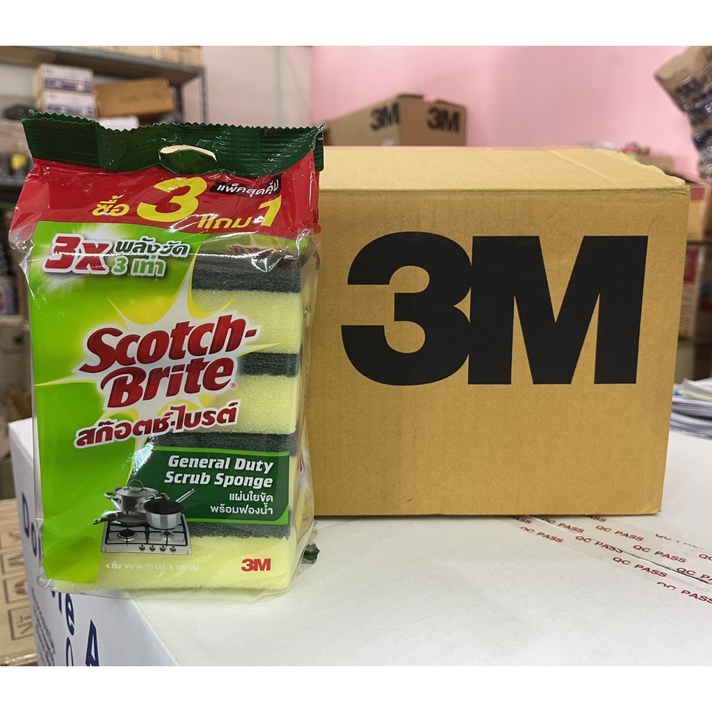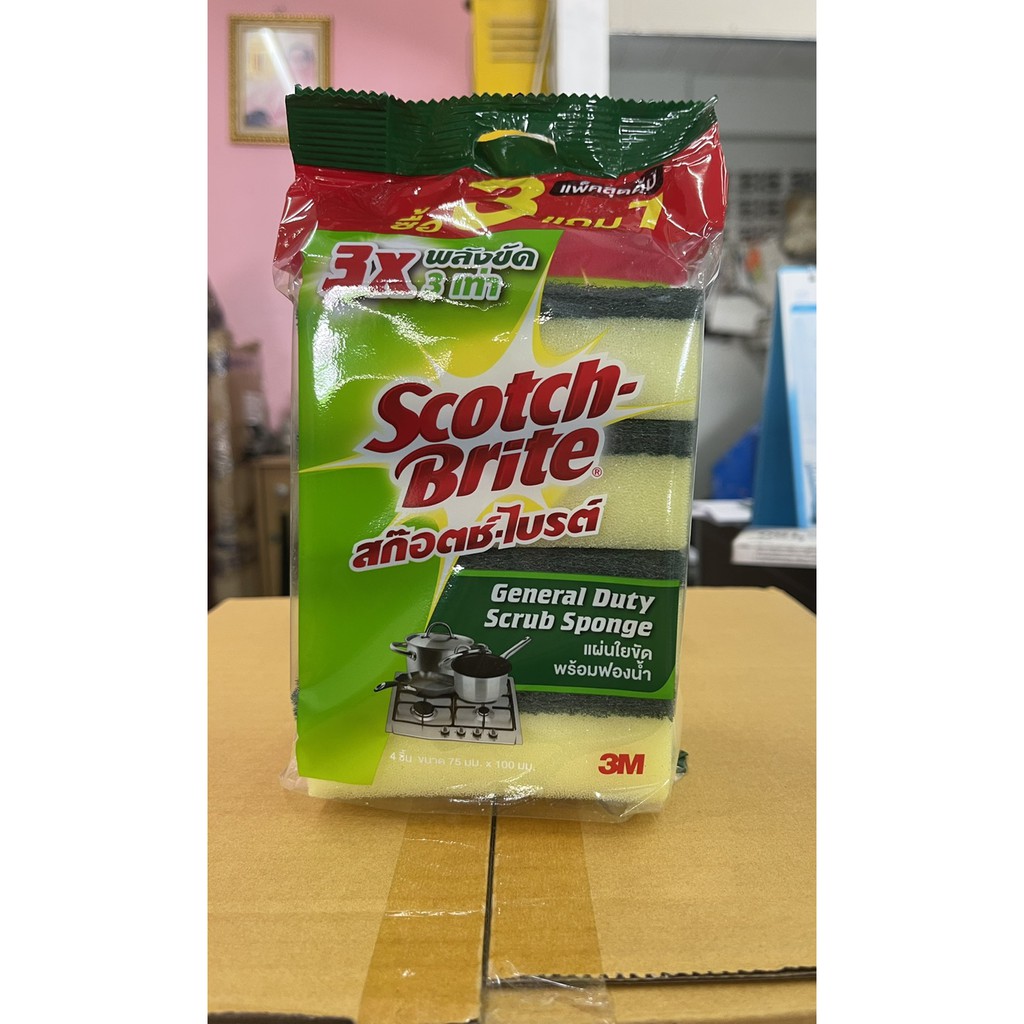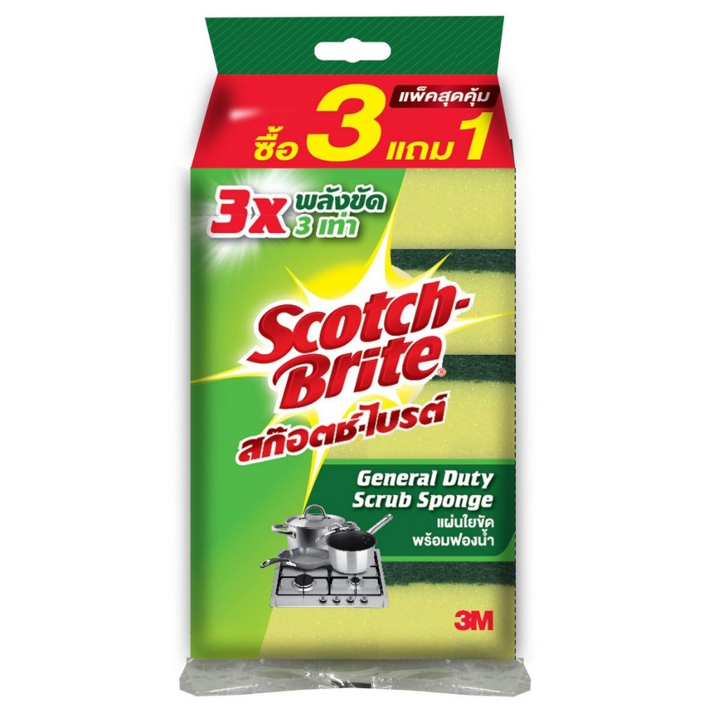 สก๊อตช์-ไบรต์ แผ่นใยขัดพร้อมฟองน้ำ แพ็ค3แถม1 SB 3M Scotch-Brite