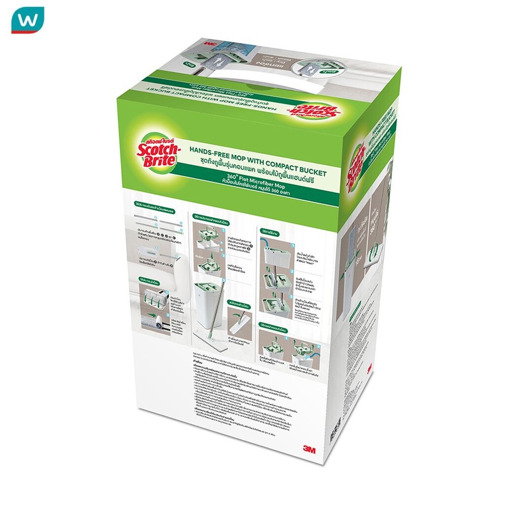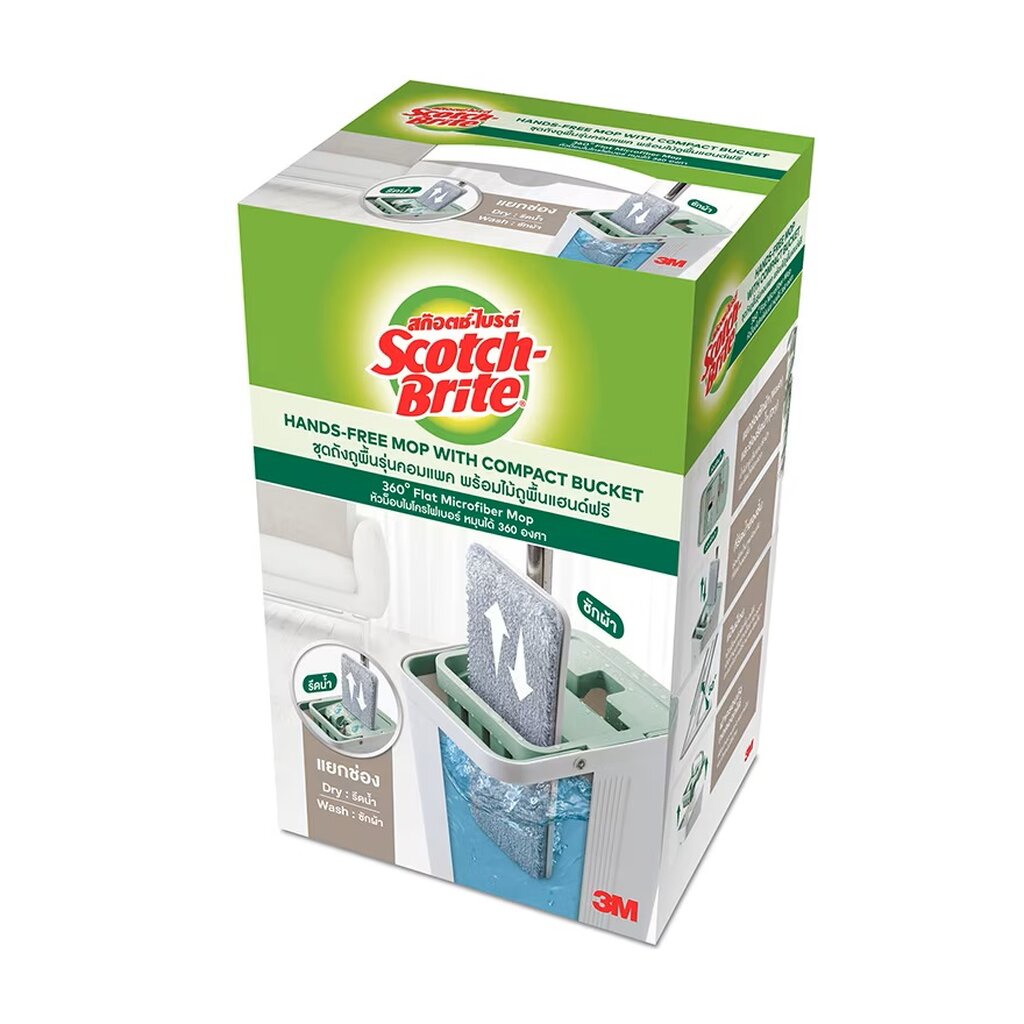 Scotch Brite สก๊อตช์-ไบรต์ ชุดถังถูพื้น รุ่นคอมแพค (ถัง + ไม้ถูพื้นแฮนด์ฟรี)