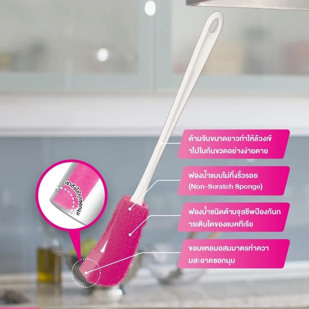 3M สก๊อตช์-ไบรต์ แปรงล้างขวด Bottle Cleaner ด้ามจับยาว ทนทาน ฟองน้ำป้องกันแบคทีเรีย