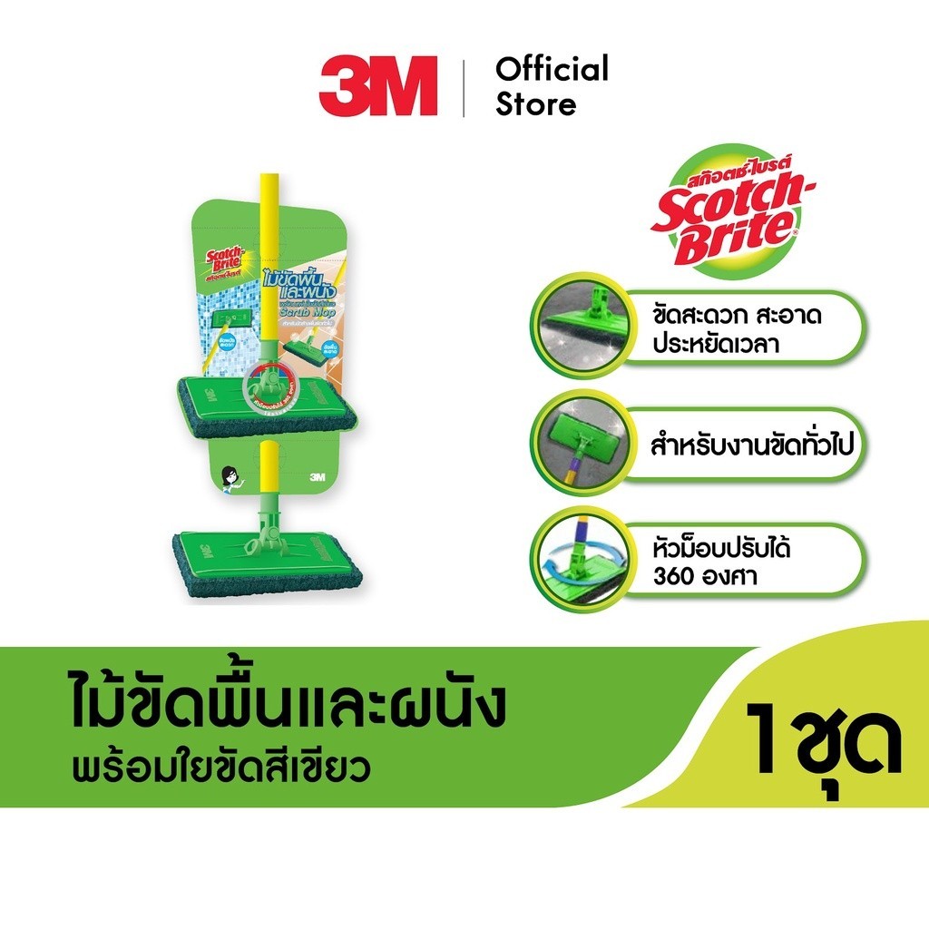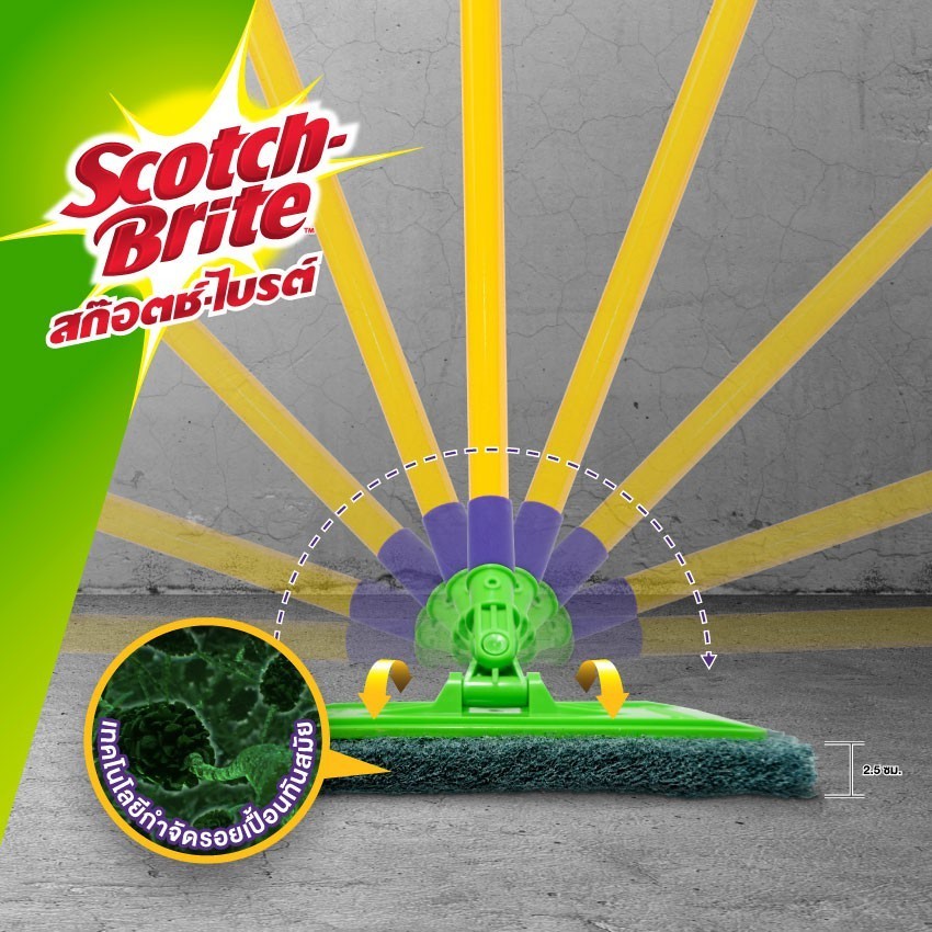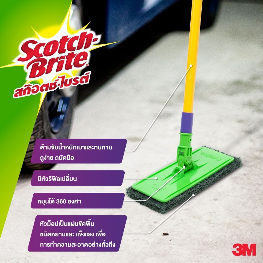 Scotch-Brite สก๊อตช์-ไบรต์ ไม้ม็อบขัดพื้นพร้อมใยขัด, สำหรับงานทั่วไป, หัวม็อบพร้อมด้าม