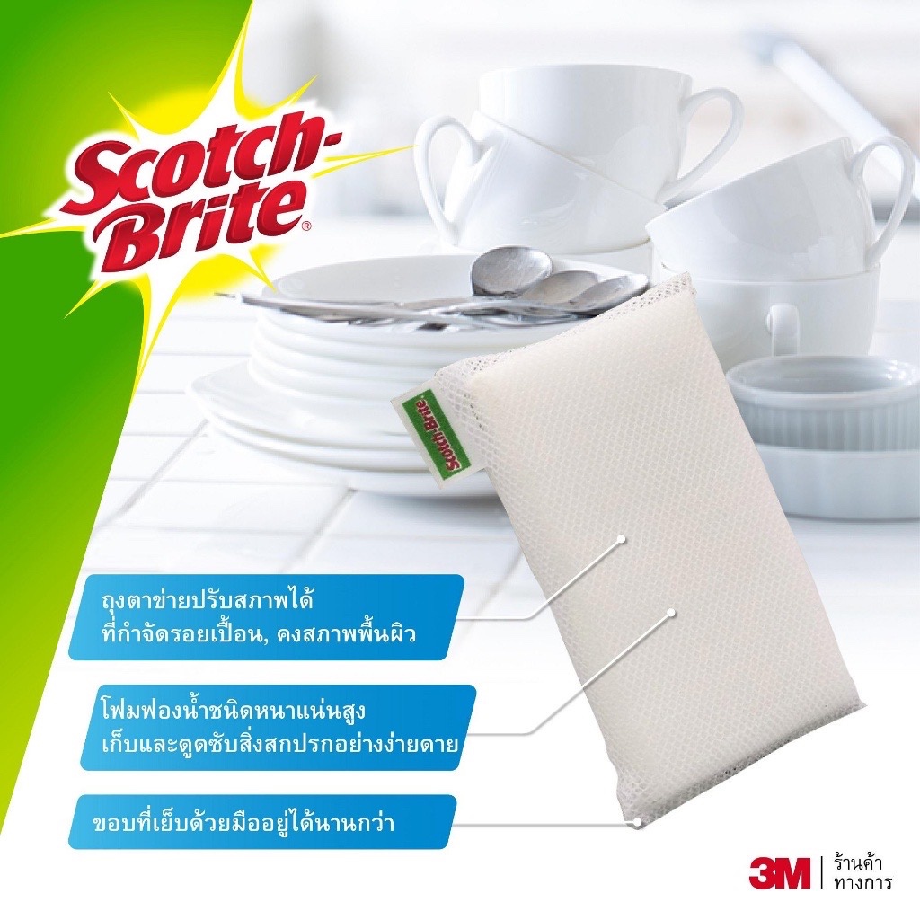 3M สก๊อตช์-ไบรต์ ฟองน้ำตาข่าย แพ็ค 1 ชิ้น 3M Scotch-Brite sponge mesh pack 1 PCs