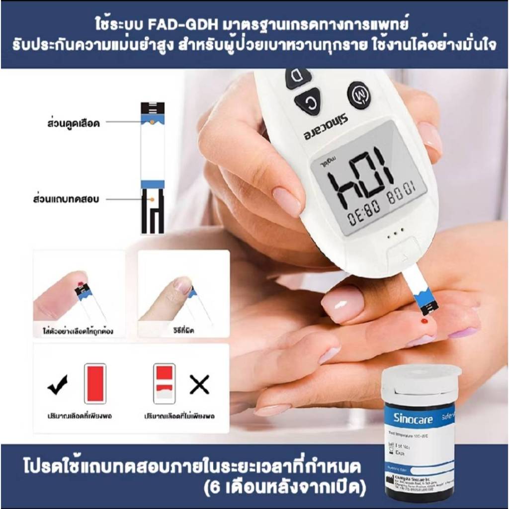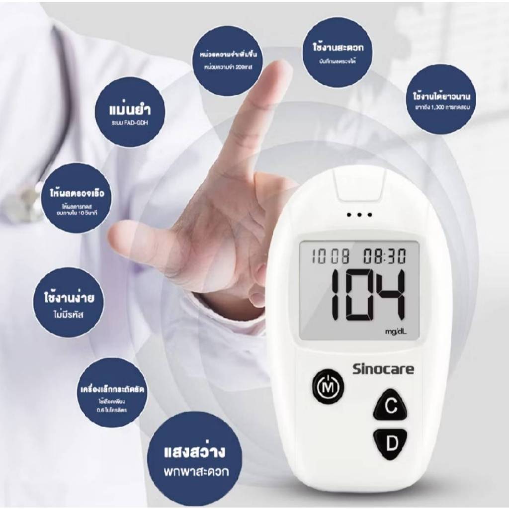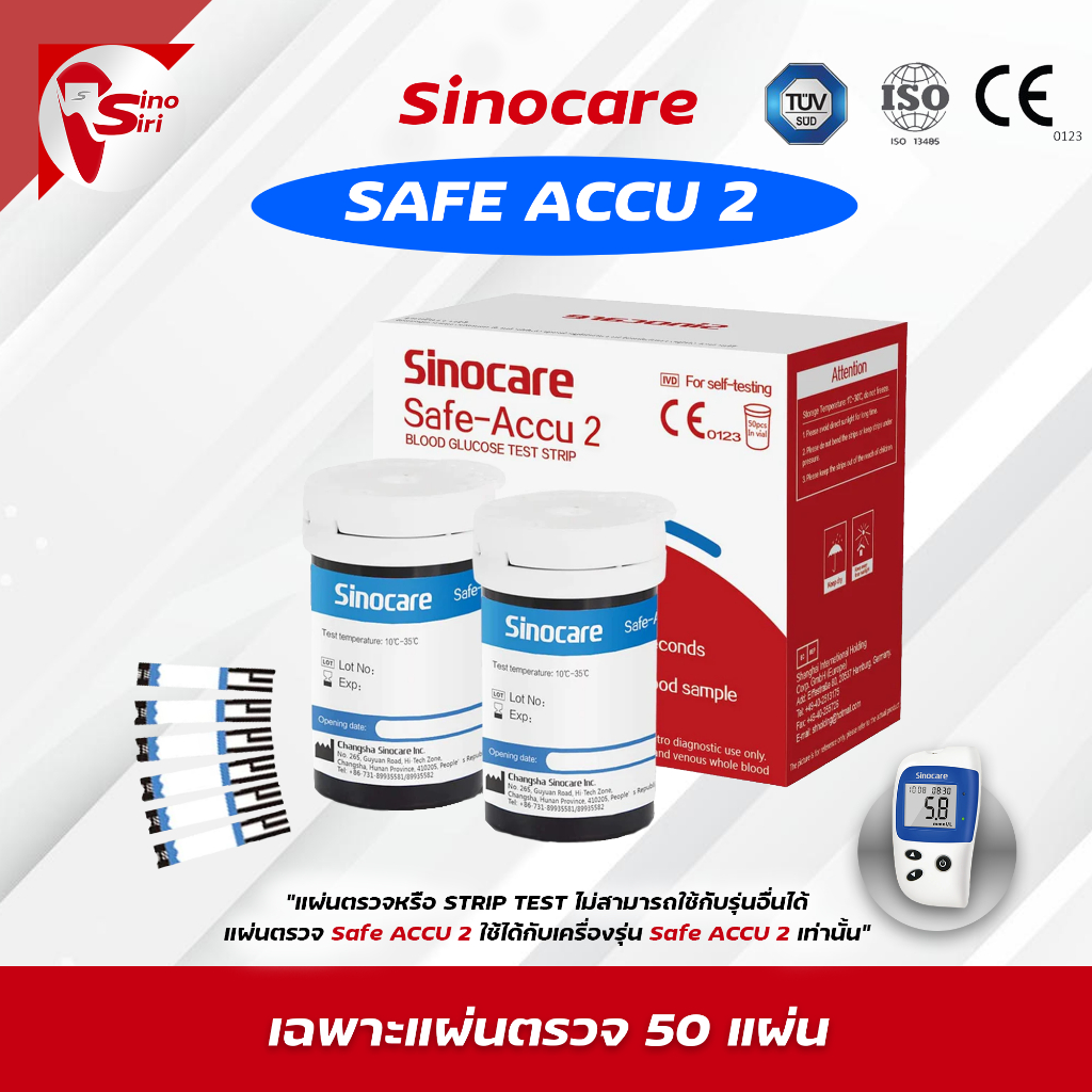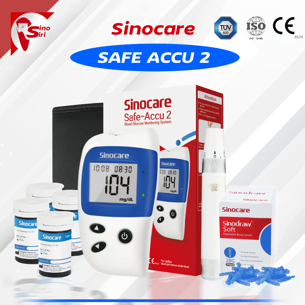 รับประกัน 5 ปี เครื่องวัดน้ำตาล 🩸Sinocare Safe Accu 2 🩸 ครบชุด แผ่นตรวจ50ชิ้น เข็ม50ชิ้น ตรวจเบาหวาน