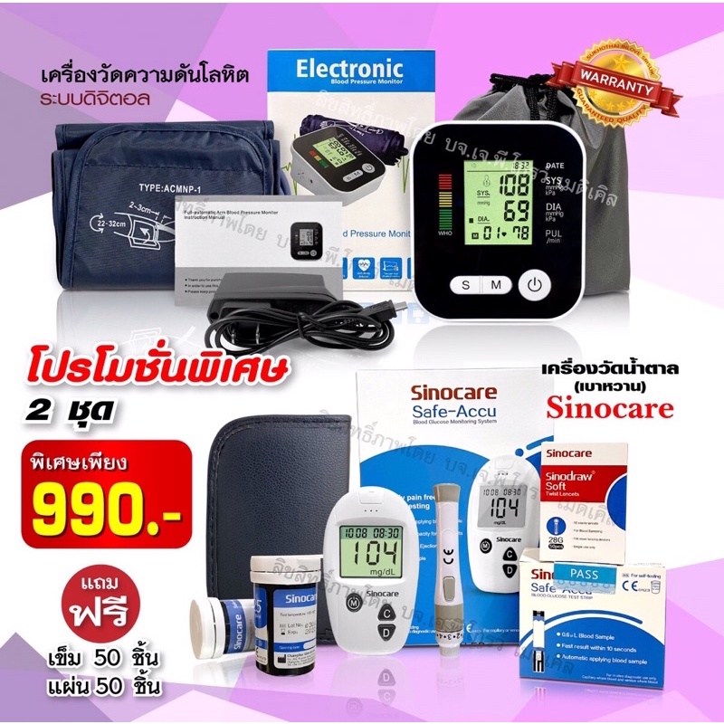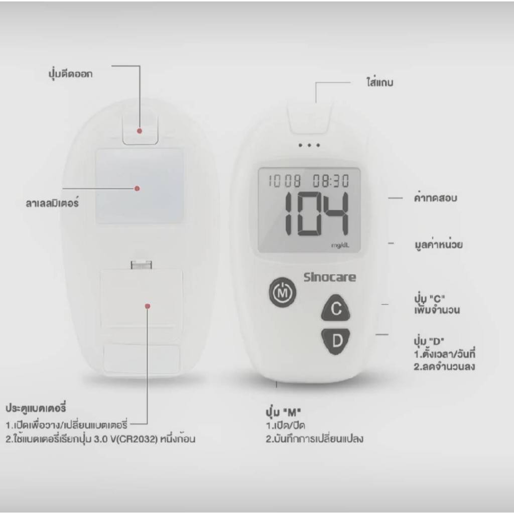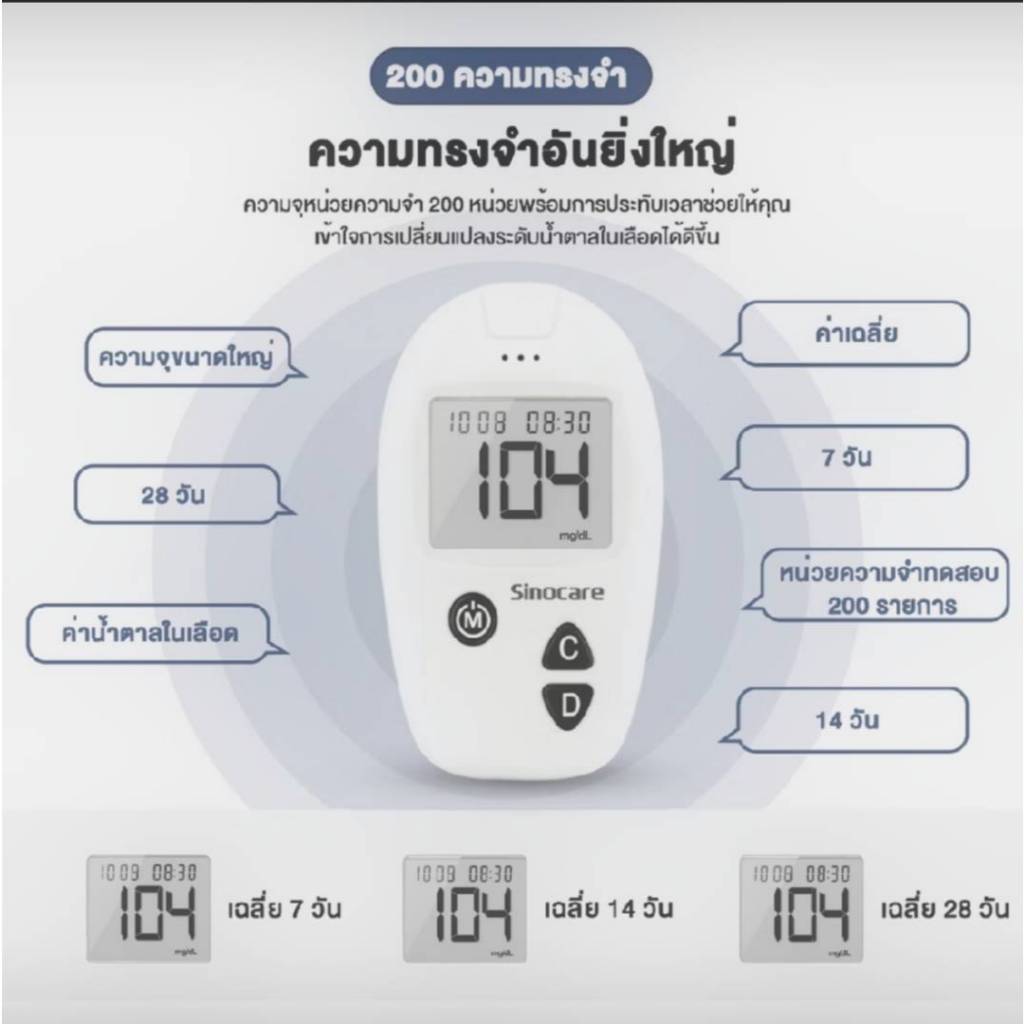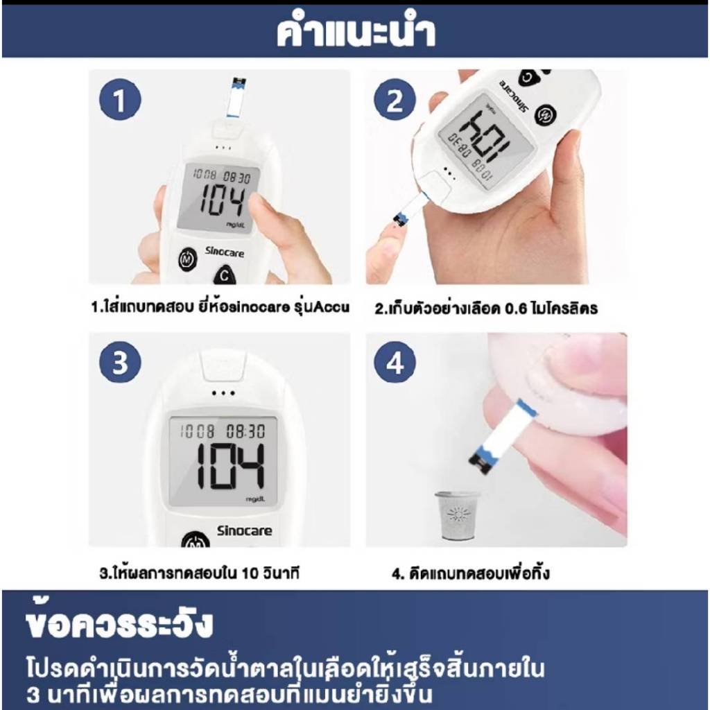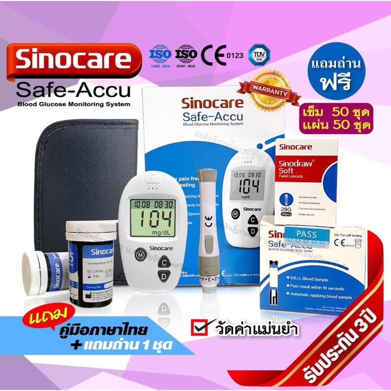 รับประกัน 5 ปี เครื่องวัดน้ำตาล 🩸Sinocare Safe Accu 2 🩸 ครบชุด แผ่นตรวจ50ชิ้น เข็ม50ชิ้น ตรวจเบาหวาน