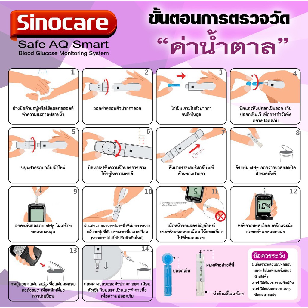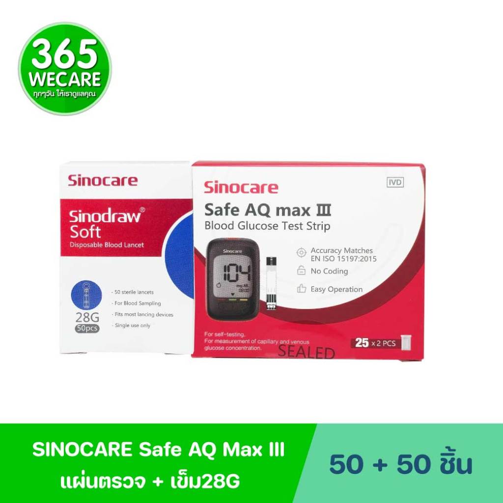 SINOCARE Safe AQ Max III Strip 50ชิ้น+เข็ม28G 50ชิ้น แผ่นทดสอบระดับน้ำตาลในเลือด 365wecsre