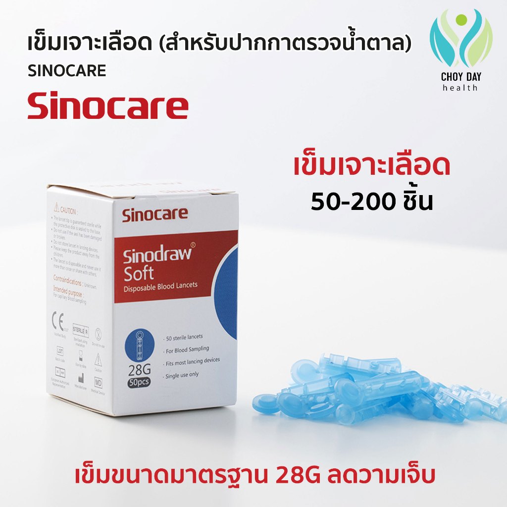 เข็มเจาะปลอดเชื้อ Sinocare sinodraw Lancets 1 กล่องมี 50 ชิ้น