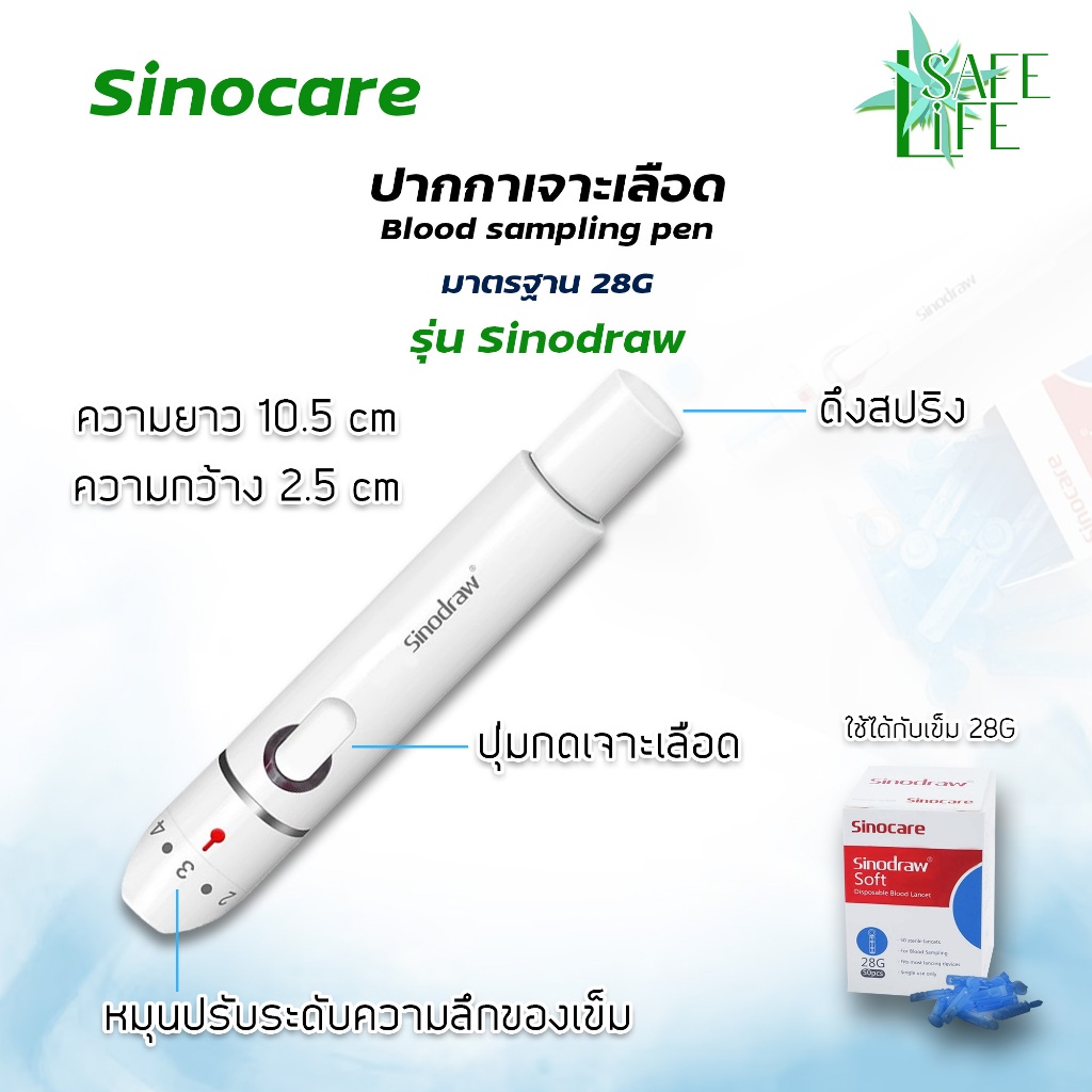 ✨รับประกัน 5 ปี✨ Blood Sampling Pen ปากกาเช็คน้ำตาลแบบปุ่มกด Sinocare รุ่น Sinodraw2