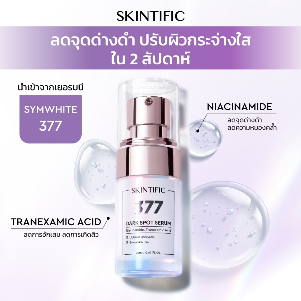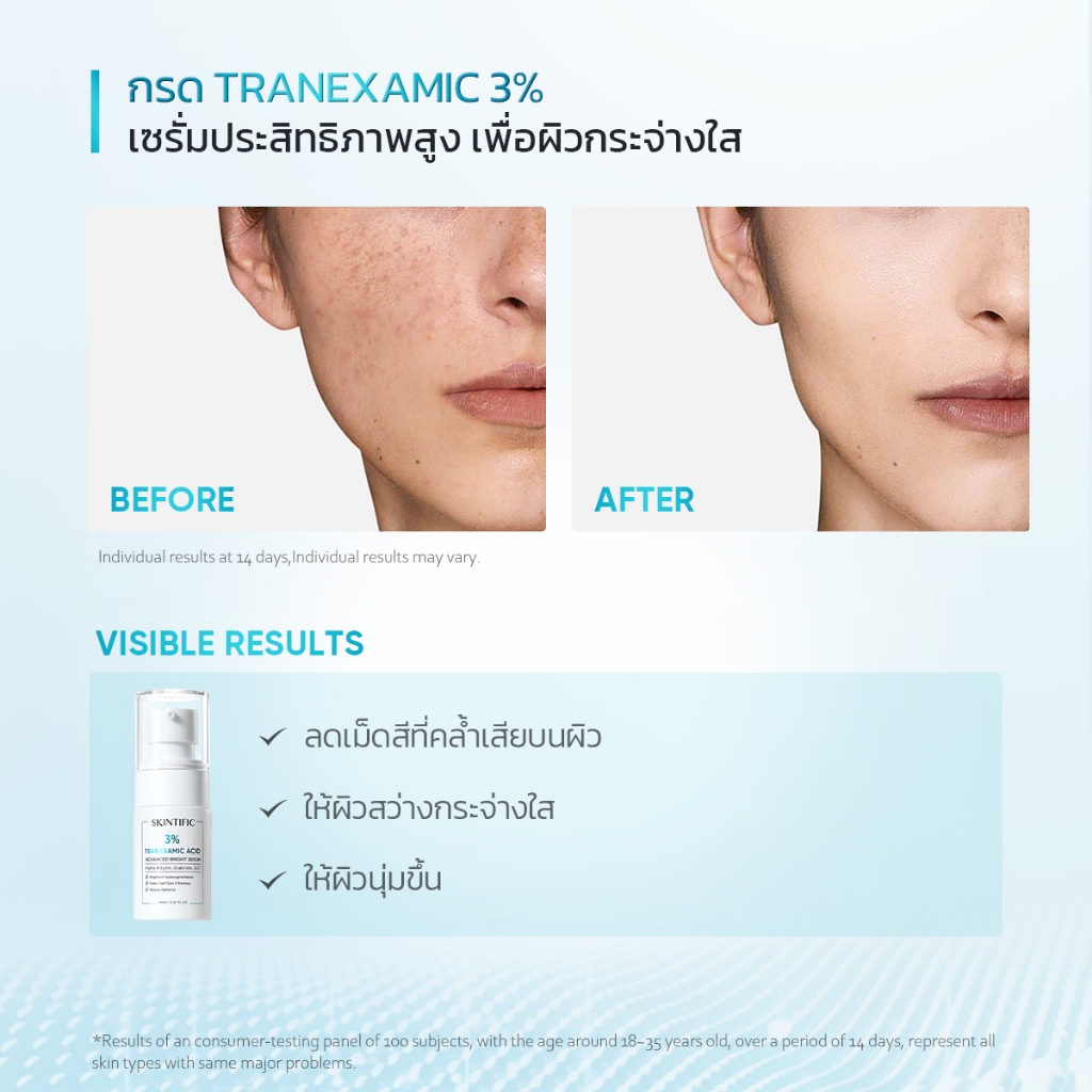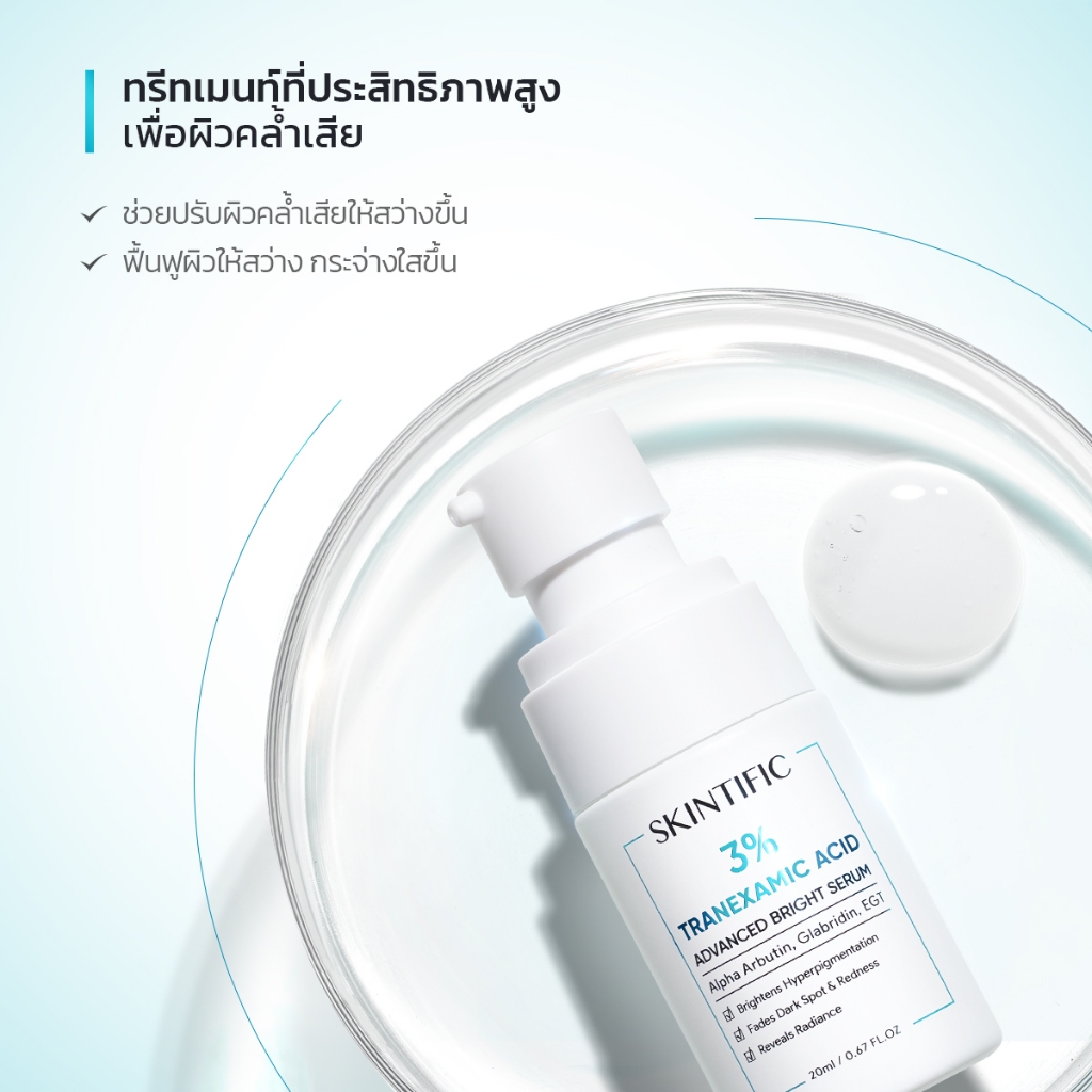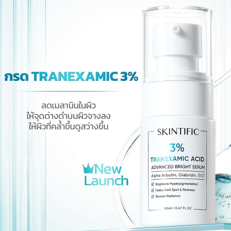 SKINTIFIC เซรั่ม 3% กรดทราเนซามิก เพิ่มความกระจ่างใส 3% TRANEXAMIC ACID anti-ance serum เซรั้มเพื่อผิวคล้ำเสีย 20ml