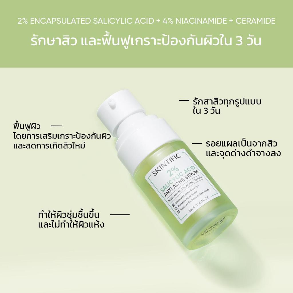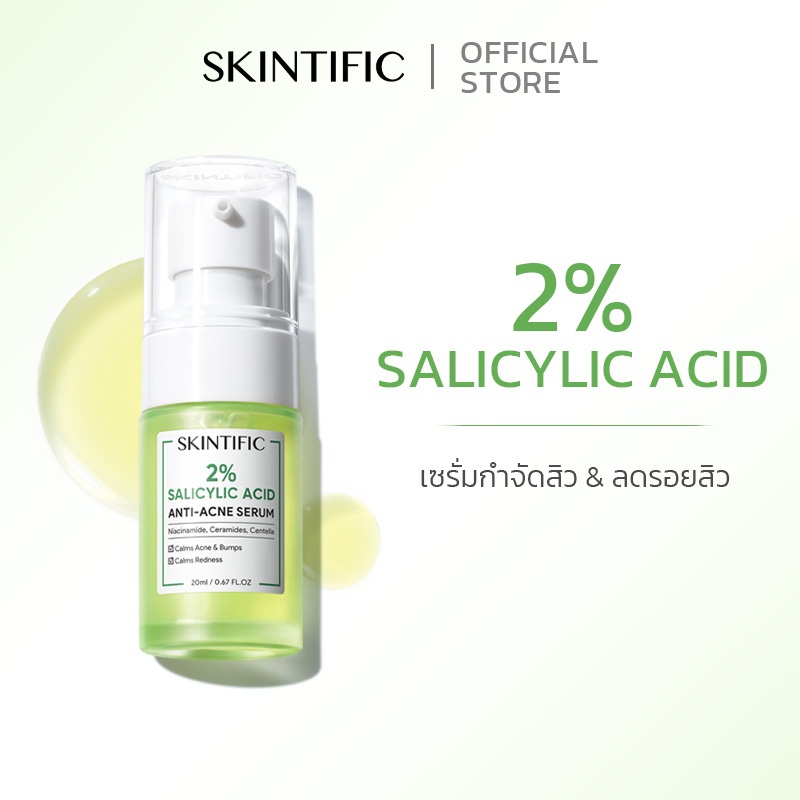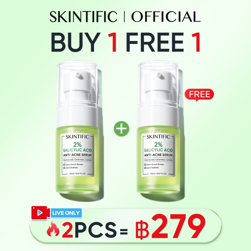 BUY 1 FREE 1 SKINTIFIC 2% salicylic acid เซรั่ม น้ำตบ 20ml เซรั่มรักษาสิว เผยผิวใส(ลดรอยสิว)Acid Anti Acne Serum