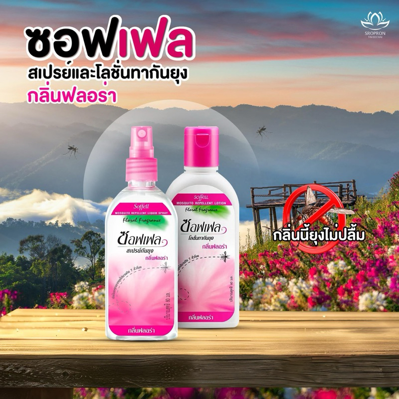 🦟 Soffell ซอฟเฟล 4 ชวด สเปรย์กันยุง กลิ่นฟลอร่า ขนาด 30 ml. ยากันยุง ซอฟเฟลชมพู
