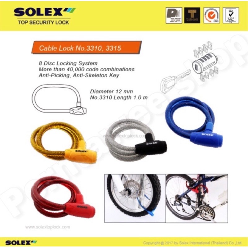 สายล็อคจักรยาน(เคเบิ้ล)Solex 💥หนามาก รุ่น3310(ยาว1M),รุ่นC412แบบรหัส(ยาว1.2M)และรุ่นC418(ยาว1.8M)