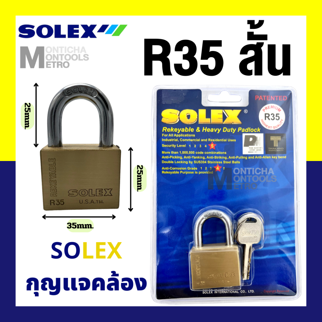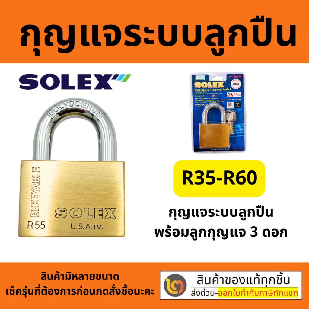 กุญแจ Solex แม่กุญแจคอสั้น-ยาว ระบบลูกปืน 35-40-45-50-55 มม. รุ่น EXTRA PLUS สีทอง