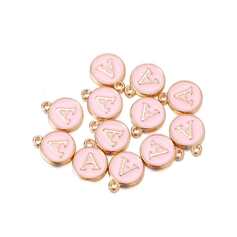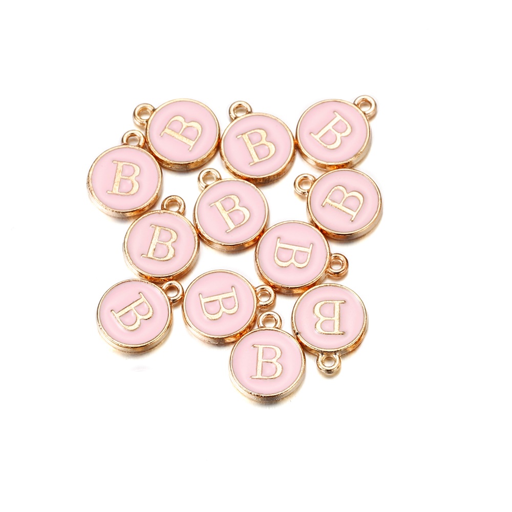 1ชิ้น12มิลลิเมตรสีชมพูจดหมายจี้สร้อยคอสร้อยข้อมือ ทําเอง เครื่องประดับทํา