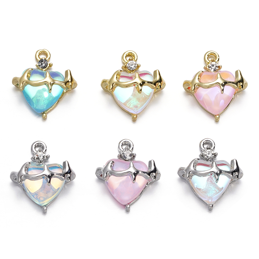 St. kunkka 1-2 ชิ้นจี้โลหะผสมที่มีสีสันแขวนชุบ Dot เพชรจี้หัวใจสําหรับเครื่องประดับ DIY จี้ทํา