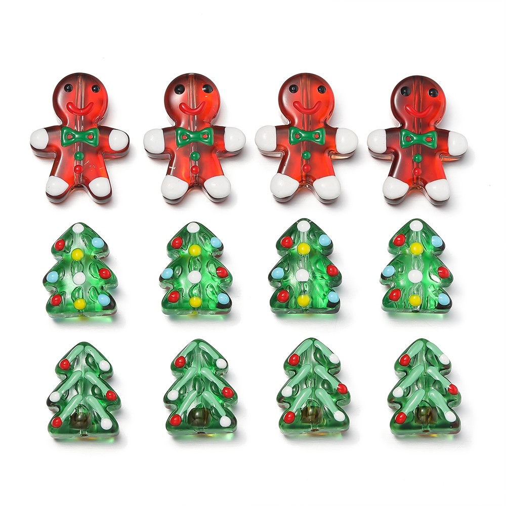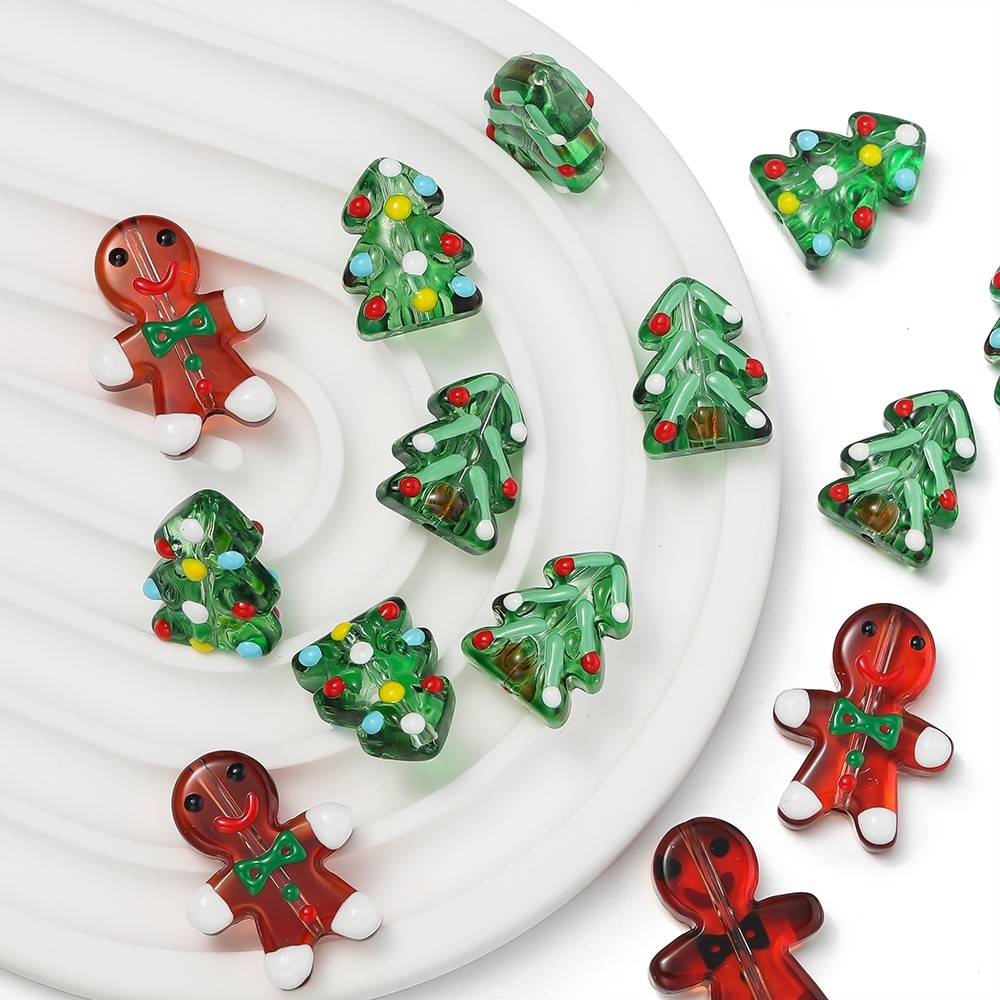 St. kunkka 1 ชิ้นแก้วมือวาดต้นคริสต์มาสคริสต์มาส Snowman จี้ลูกปัดแก้วลูกปัดสําหรับเครื่องประดับ DIY ทําสร้อยคอสร้อยข้อมือ