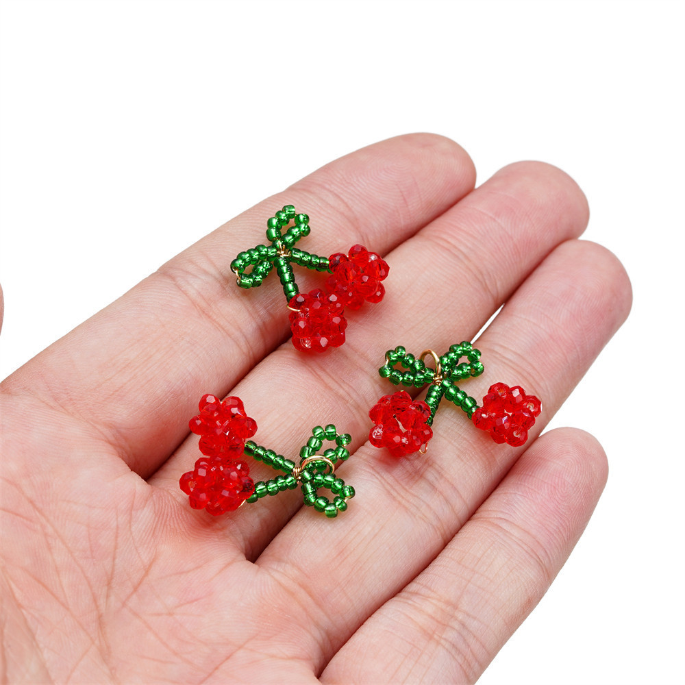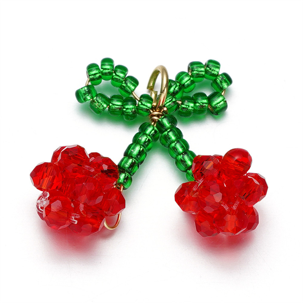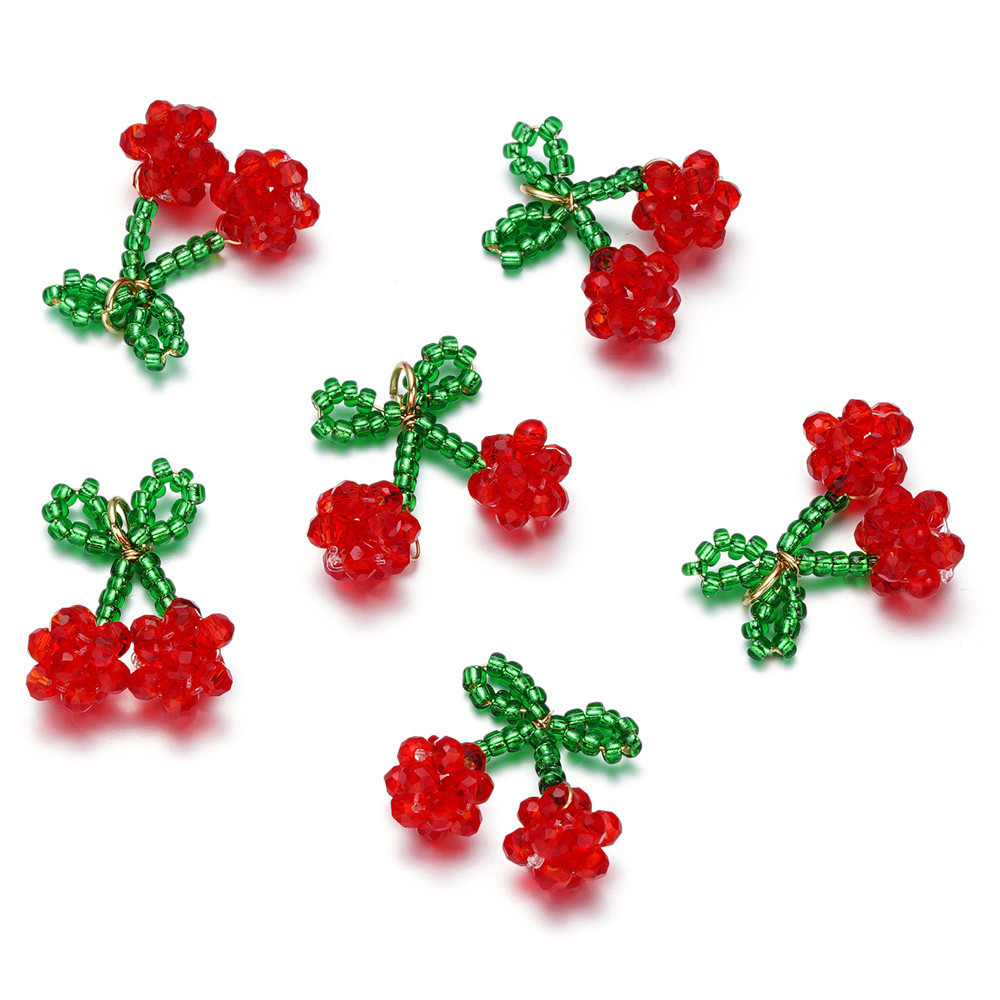 St. kunkka 1 ชิ้นคริสตัลจี้เชอร์รี่จี้แก้วข้าวลูกปัดถักจี้แฟชั่น Charm สําหรับ DIY สร้อยข้อมือสร้อยคอจี้ทํา