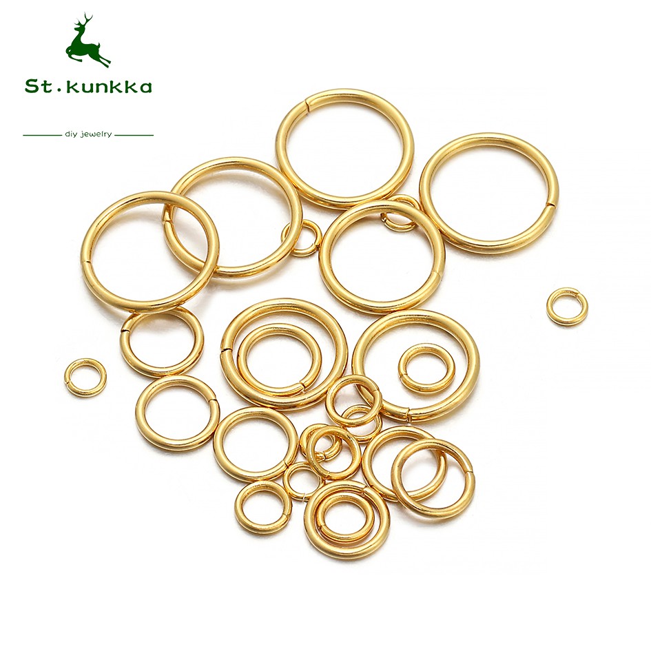 St.kunkka 200 ชิ้น สแตนเลส ห่วงกลม ทอง ห่วงห้อยจี้ ตัวเลือกหลายขนาด