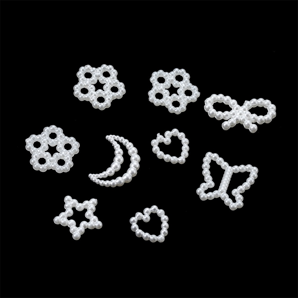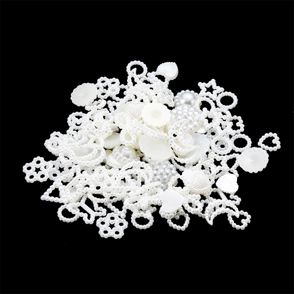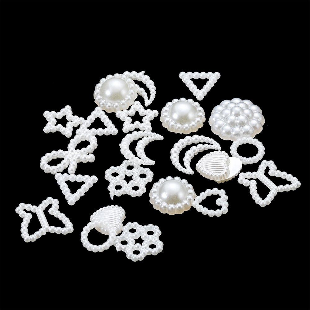 ST.KUNKKA 100-300 ชิ้น ลูกปัดมุก ต่อแพ็ค ลูกปัดไข่มุก ABS รูปหัวใจ ดาว ดอกไม้ สีขาว สําหรับทําเครื่องประดับ DIY วัสดุเสื้อผ้าและอุปกรณ์เสริม