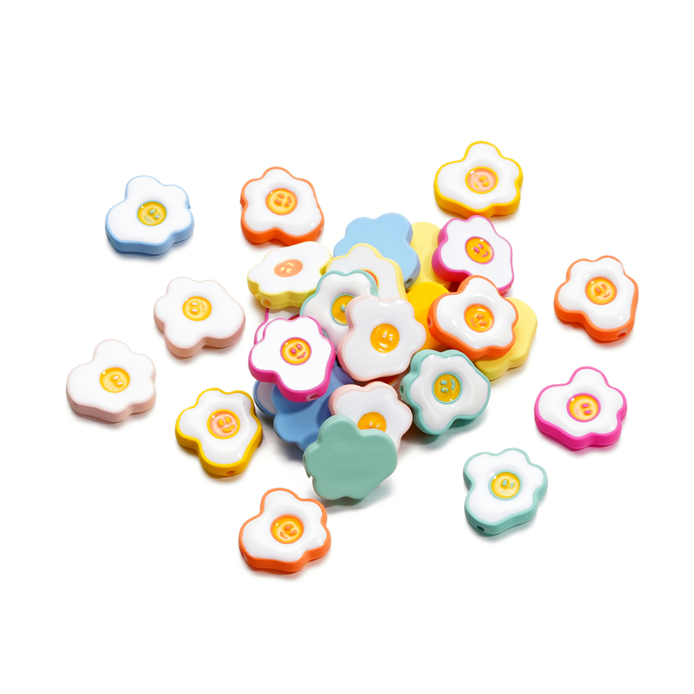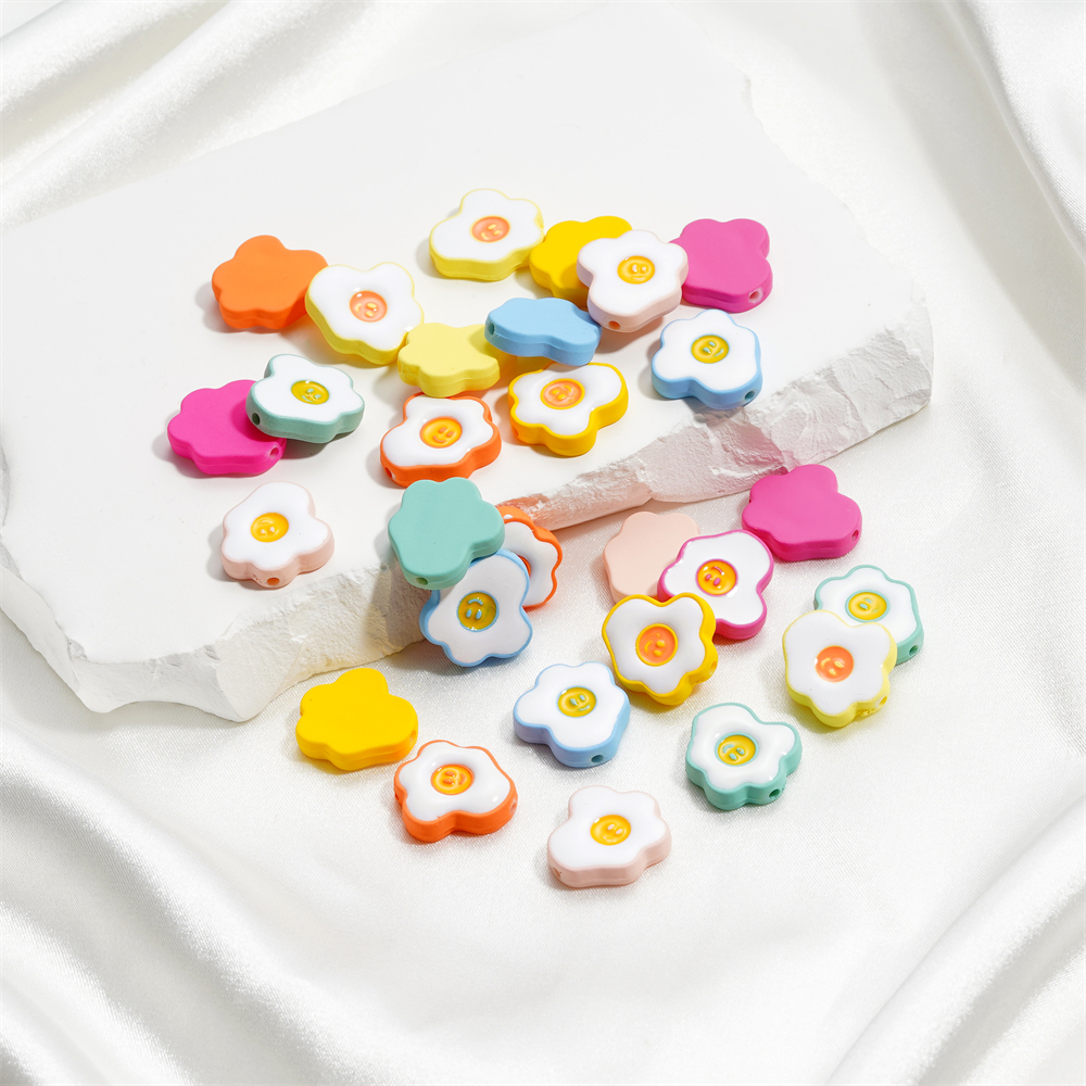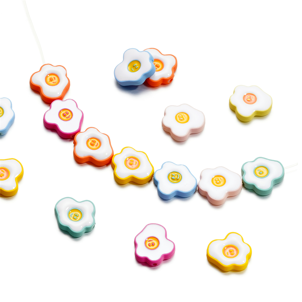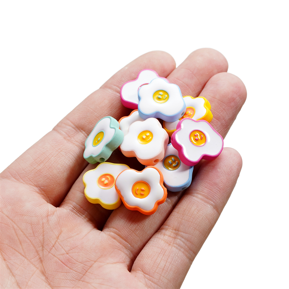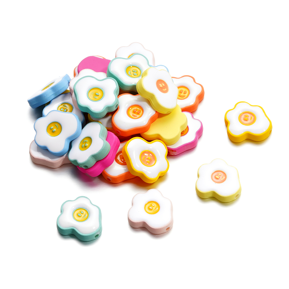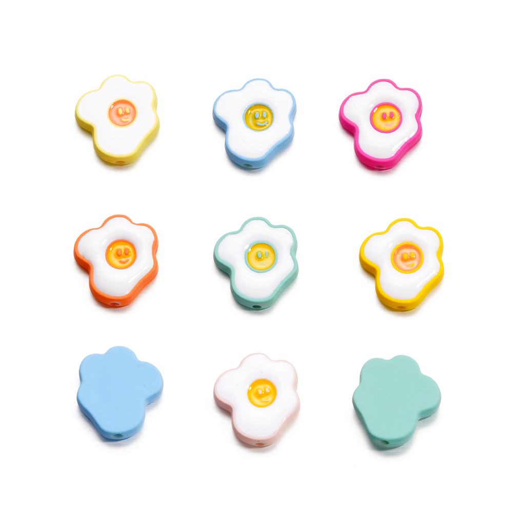 ST.KUNKKA 4 ชิ้น/ถุง 16.5*18 มม. วัสดุอะคริลิคลูกปัดไข่ดาวขนาดเล็กไข่ลวกลูกปัดน่ารักไข่ลวกหน้ายิ้มลูกปัดสำหรับ DIY เครื่องประดับทำสร้อยข้อมือเชือกเส้นเล็ก