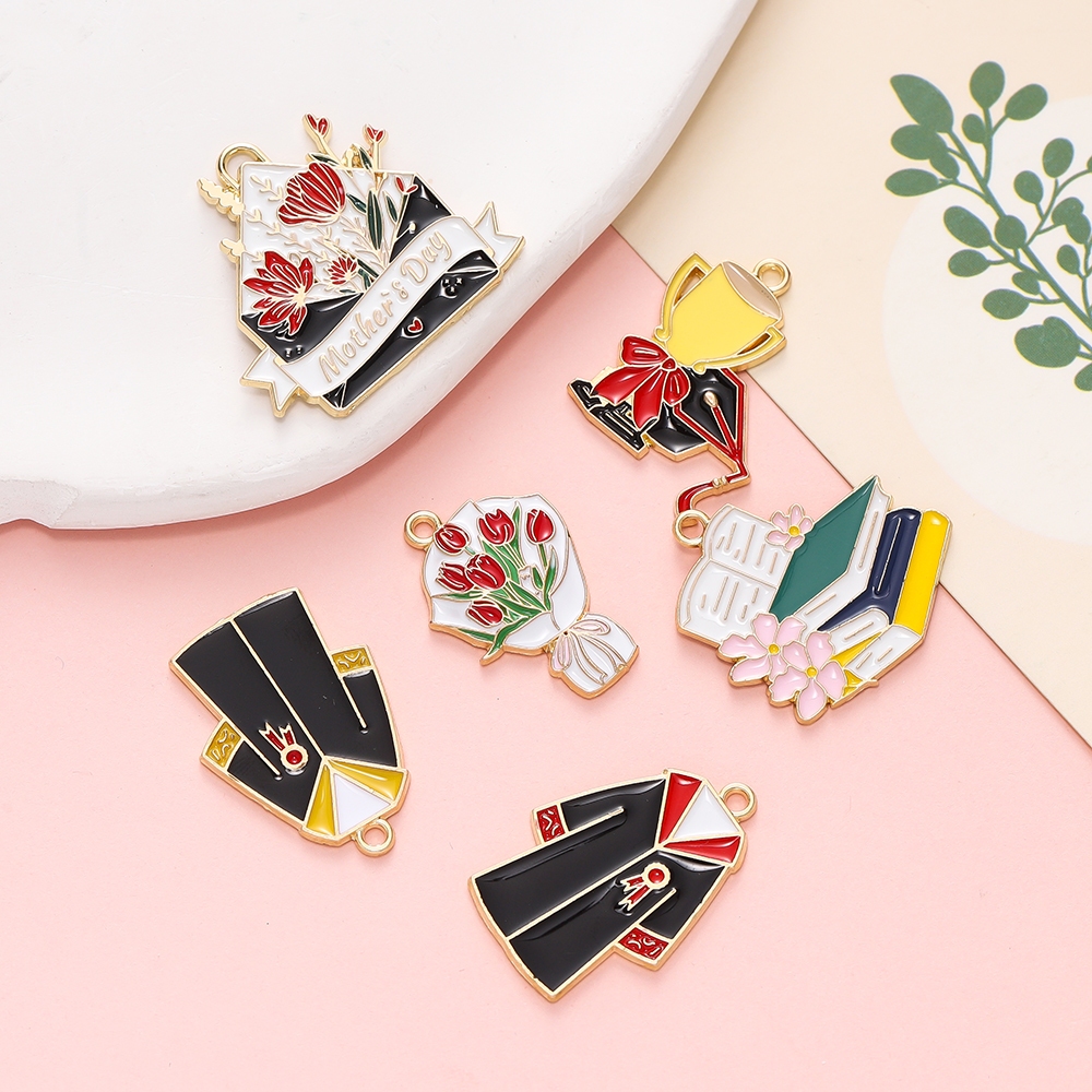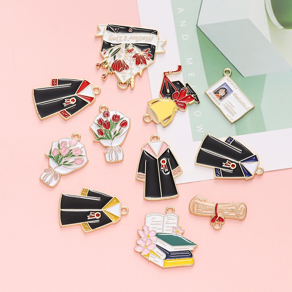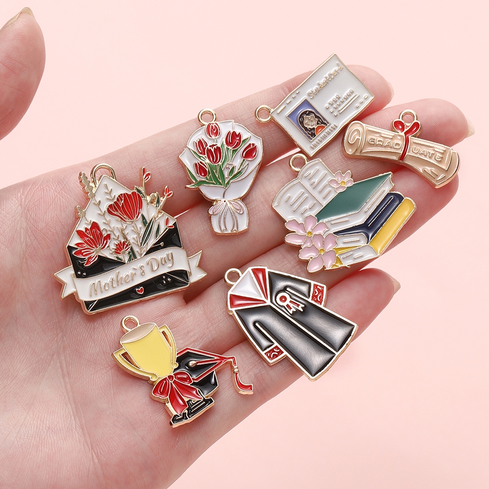 St.kunkka 4 ชิ้น/แพ็ค Alloy Oil Drip Pendants ของที่ระลึกของขวัญสร้างสรรค์นักเรียนของขวัญรับปริญญา มือสร้อยคอจี้ DIY เครื่องประดับโลหะผสม