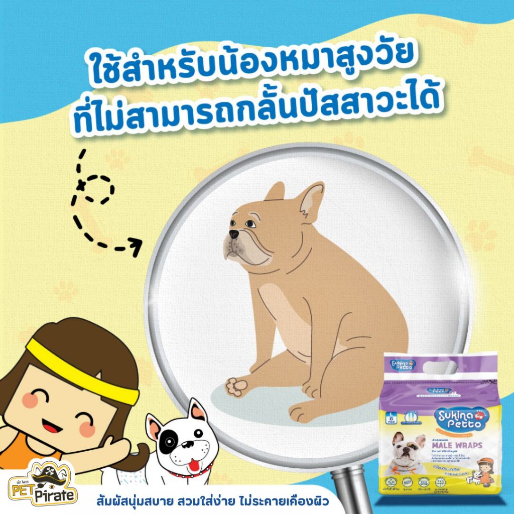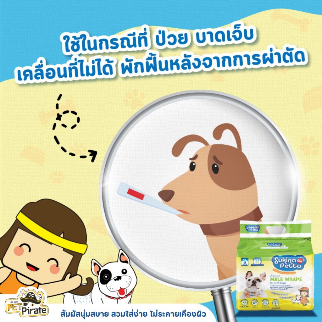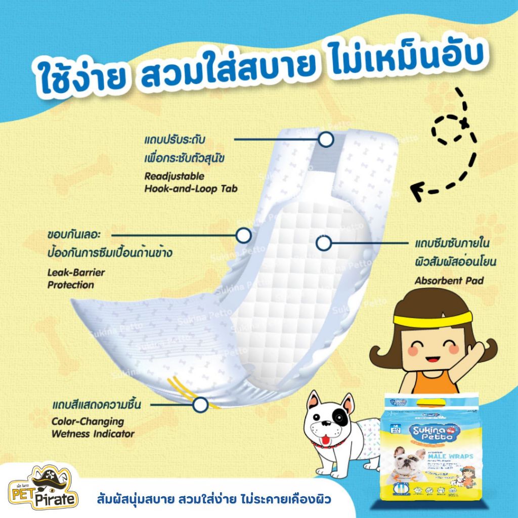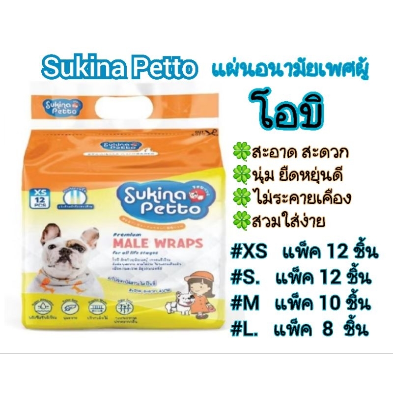 Sukina Petto โอบิ สำหรับสุนัขเพศผู้ สัมผัสนุ่มสบาย สวมใส่ง่าย ไม่ระคายเคืองผิว ดูดซึมเร็ว มี 5 ไซซ์