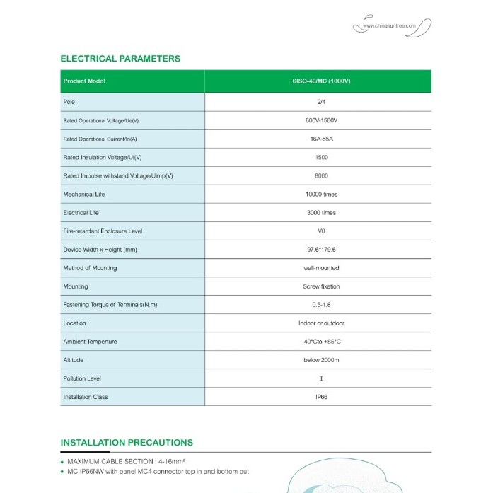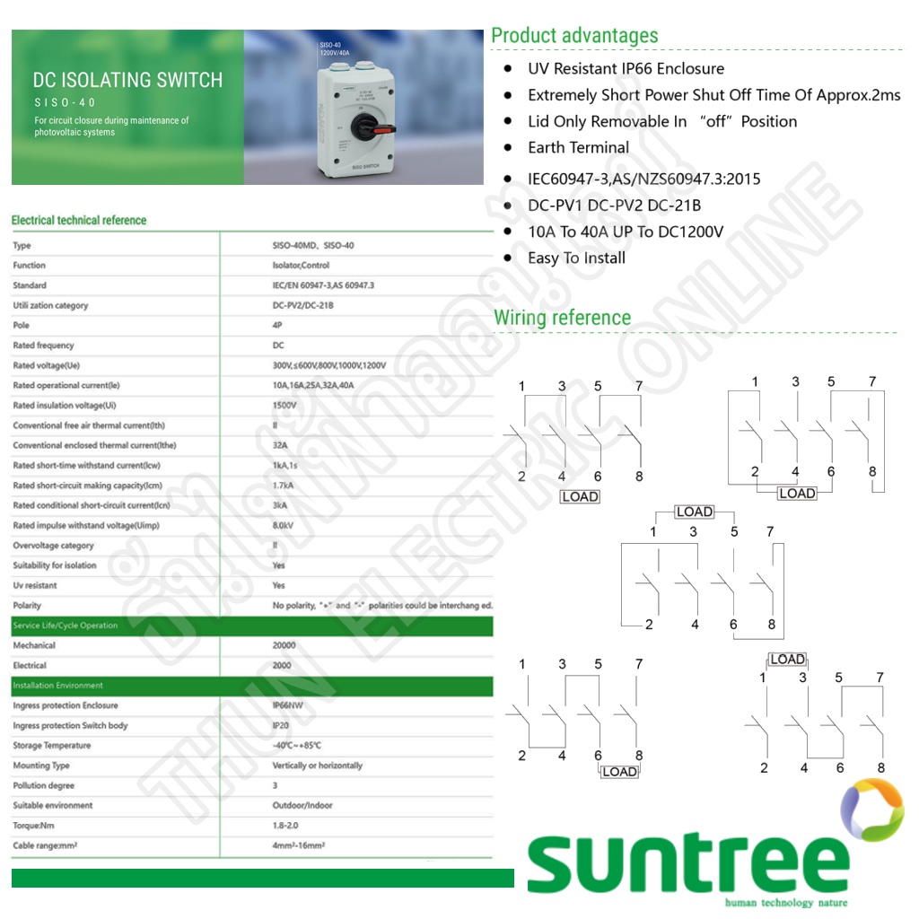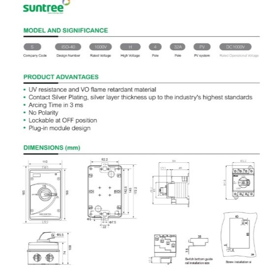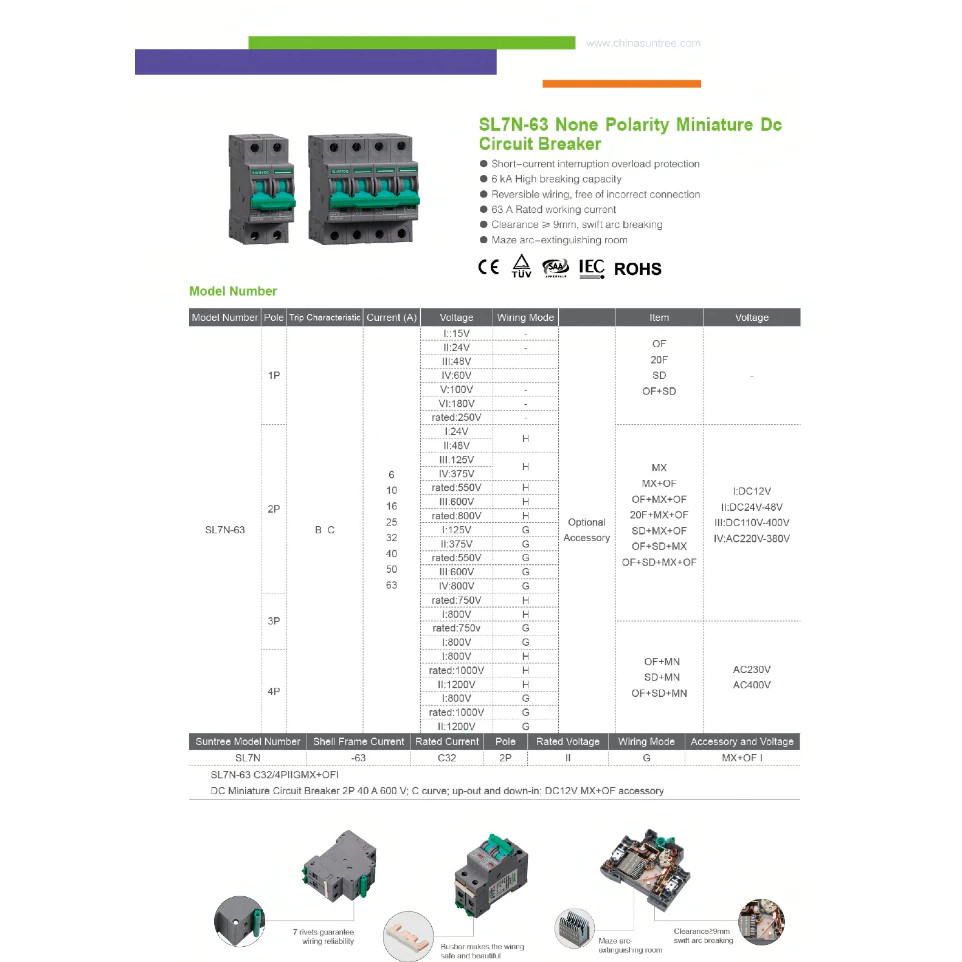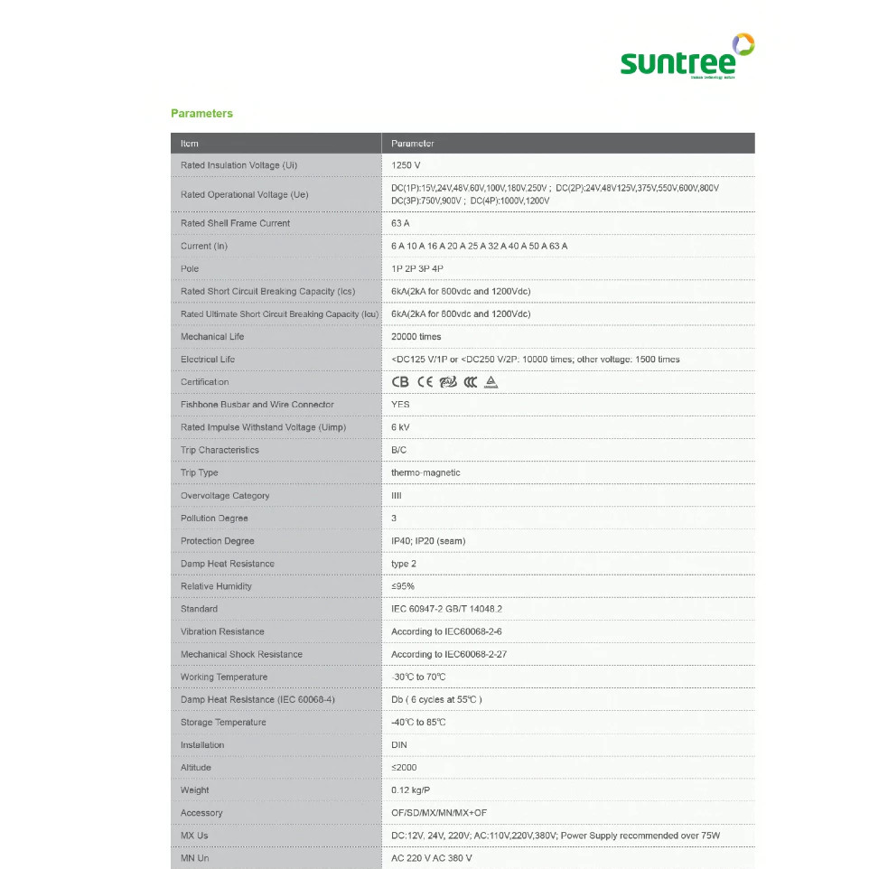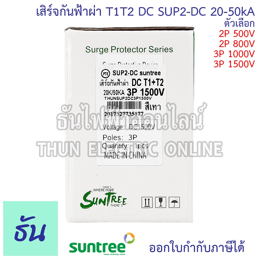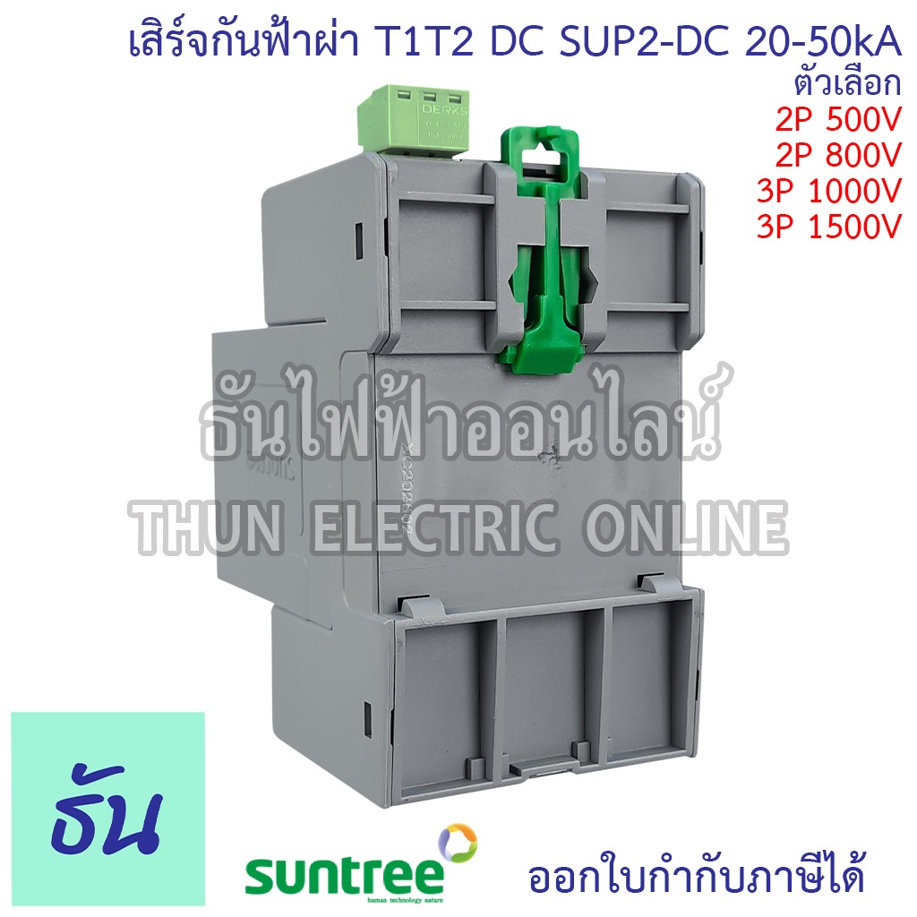 Suntree SUP2-DC เสิร์จกันฟ้าผ่า T1T2 DC 20-50kA ตัวเลือก 2P 500V, 2P 800V, 3P 1000V, 3P 1500V SPD Class 1+2 กันฟ้าผ่า
