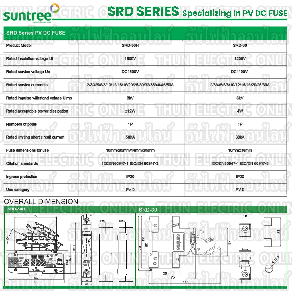 Suntree ฐานฟิวส์ SRD-30 10×38 DC 1100V ลูกฟิวส์ SRF-30 FUSE HOLDER ฟิวส์กระบอก ฟิวส์ ตลับฟิวส์ DC ฟิวส์ ธันไฟฟ้า