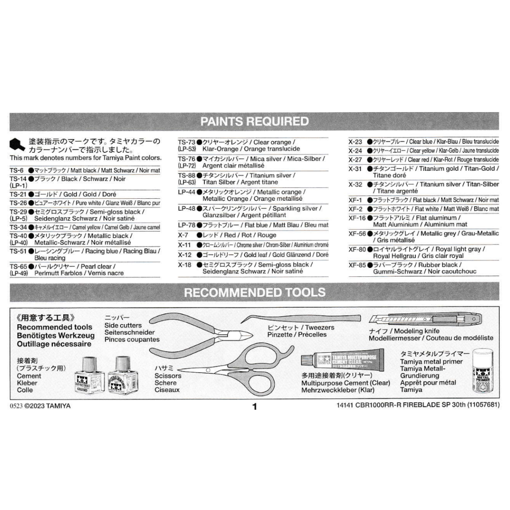 🏆 TAMIYA 14141 ชุดประกอบจำลองมาตราส่วน 1:12 Honda CBR1000RR-R FIREBLADE SP 30th ANY. สร้างและทำสีเอง