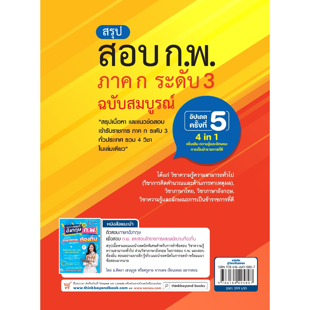Thinkbeyond Book (ธิงค์บียอนด์ บุ๊คส์) 95807 หนังสือ สรุปสอบ ก.พ. ภาค ก ระดับ 3 ฉบับสมบูรณ์ อัปเดตครั้งที่ 5