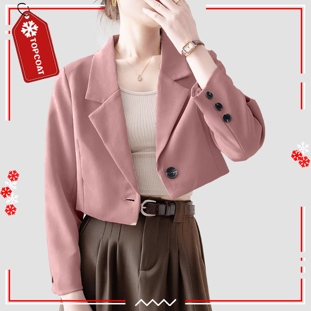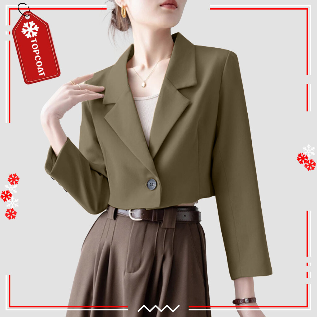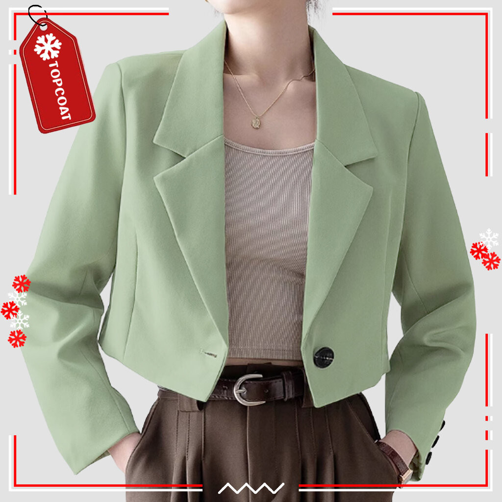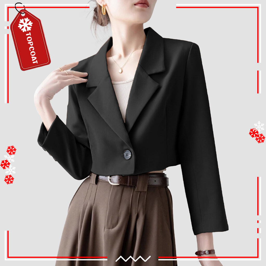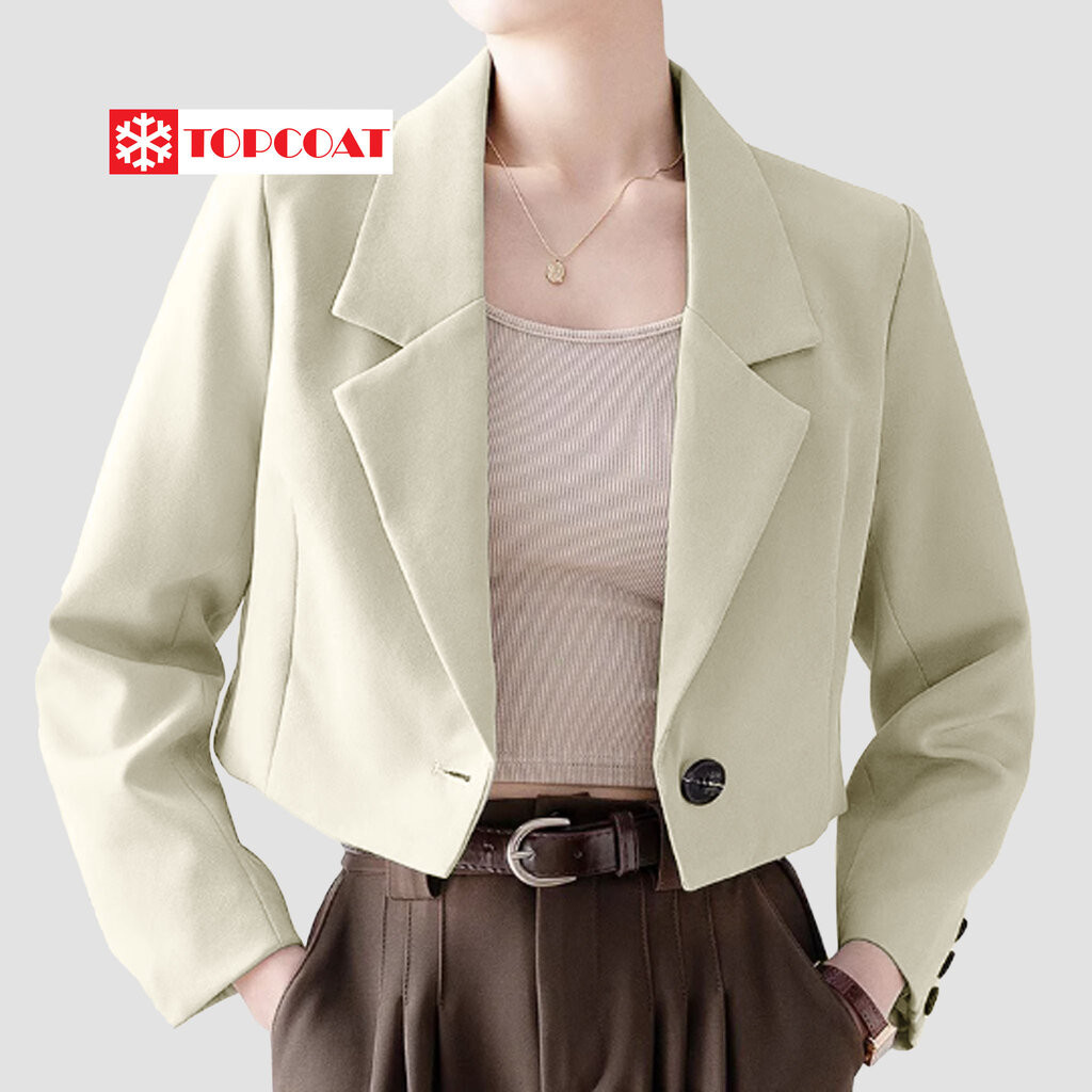 TOPCOAT สูทครอปกระดุมเดียวสำหรับผู้หญิง ผ้าอยู่ทรง ซับในทั้งตัว (1 ตัว) Size : S-3XL
