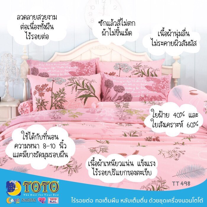 ผ้าปูที่นอน TOTO (ไม่รวมผ้านวม) ลายดอกไม้/ใบไม้ ขนาด 3.5ฟุต, 5ฟุต, 6ฟุต